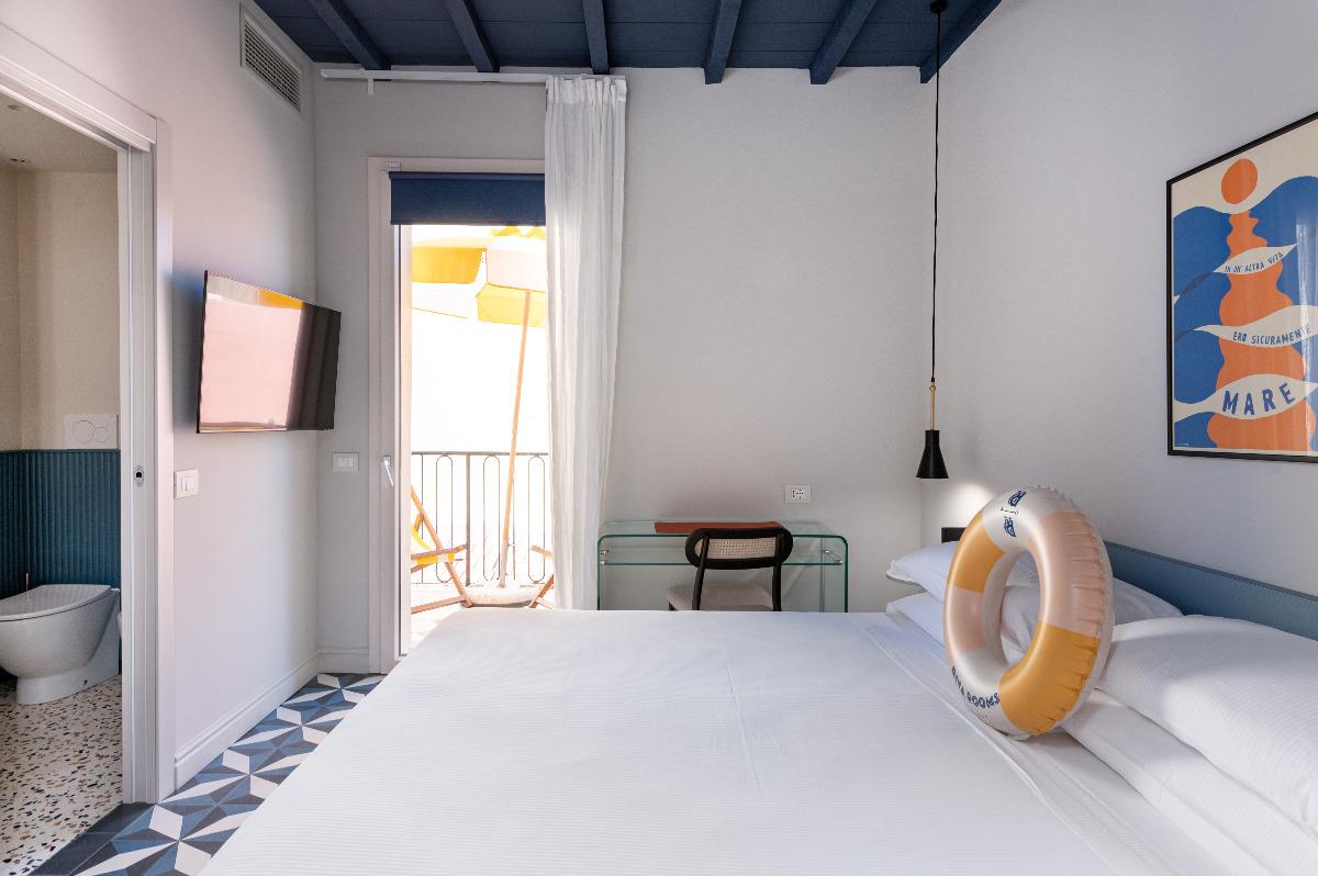 The room is furnished with materials that recall the tradition of Follonica, using elements that tell the story of local products. The ceilings with exposed wooden beams add a touch of warmth and authenticity to the environment. The room is equipped with a large bed King Size double bed (180x200) to guarantee maximum comfort. You will also find a desk, ideal for working or as a writing desk, and all the necessary comforts: minibar, Nespresso coffee machine, kettle, hairdryer and much more. The elegant and functional bathroom is equipped with a large crystal shower cubicle and offers a selection of fine body products by Acqua dell'Elba, for a unique wellness experience. Furthermore, guests can enjoy a balcony, perfect for relaxing outdoors and enjoying moments of tranquility.