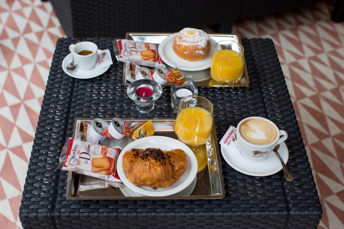 Start your day in Italian style with a delightful breakfast consisting of a freshly baked pastry croissant, expertly prepared coffee or cappuccino, a refreshing fruit juice, crunchy toast, tasty jams, sweet honey, and the famous Nutella.