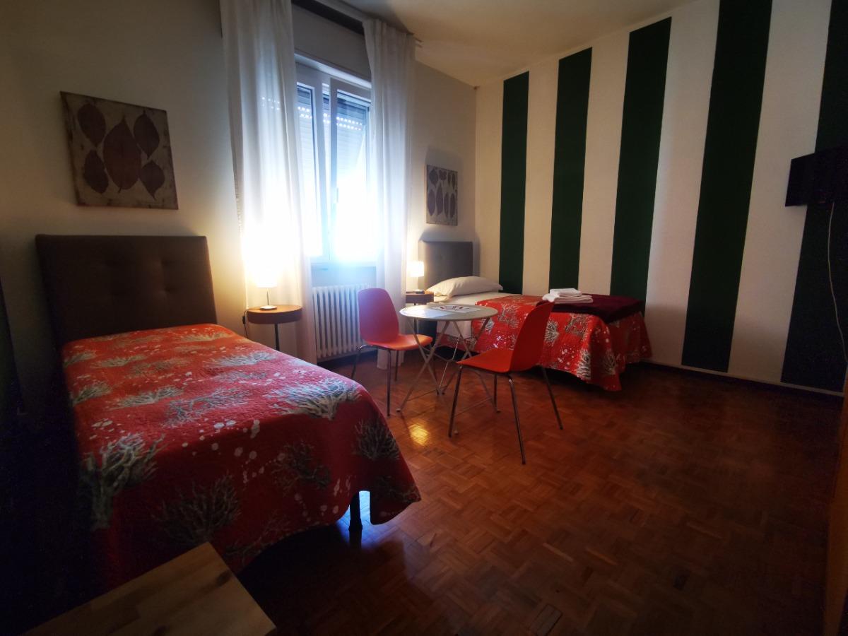L'appartamento "Room" si trova di fronte all'ingresso dell'Ospedale Maggiore (ingresso da via Abbeveratoia) nella parte occidentale della città. È situato al primo piano di un piccolo edificio, in una via tranquilla e poco trafficata.