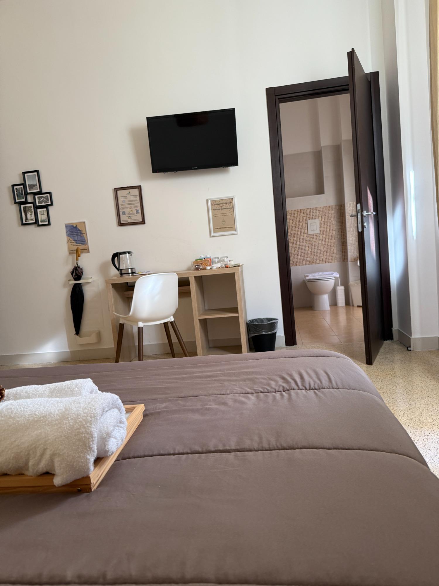 The Portarotese location is situated in the historic center, conveniently positioned for exploring the city on foot. The elegant building, which has an elevator, houses the rooms on the fourth floor and also features a common lounge where guests can relax or plan their daily activities. The rooms ensure privacy and functionality: one triple room with an exclusive external private bathroom, complete with a shower, toiletries, hairdryer, Wi-Fi, flat-screen TV, and tea and coffee making facilities; another triple room with a balcony overlooking the internal courtyard, a desk, private bathroom, and free connection; and a quadruple room with a private bathroom, sofa, toiletries, TV, and comforts ideal for families or small groups. The tiled floors, heating, and views of quiet areas contribute to making the spaces welcoming and livable throughout the year.
