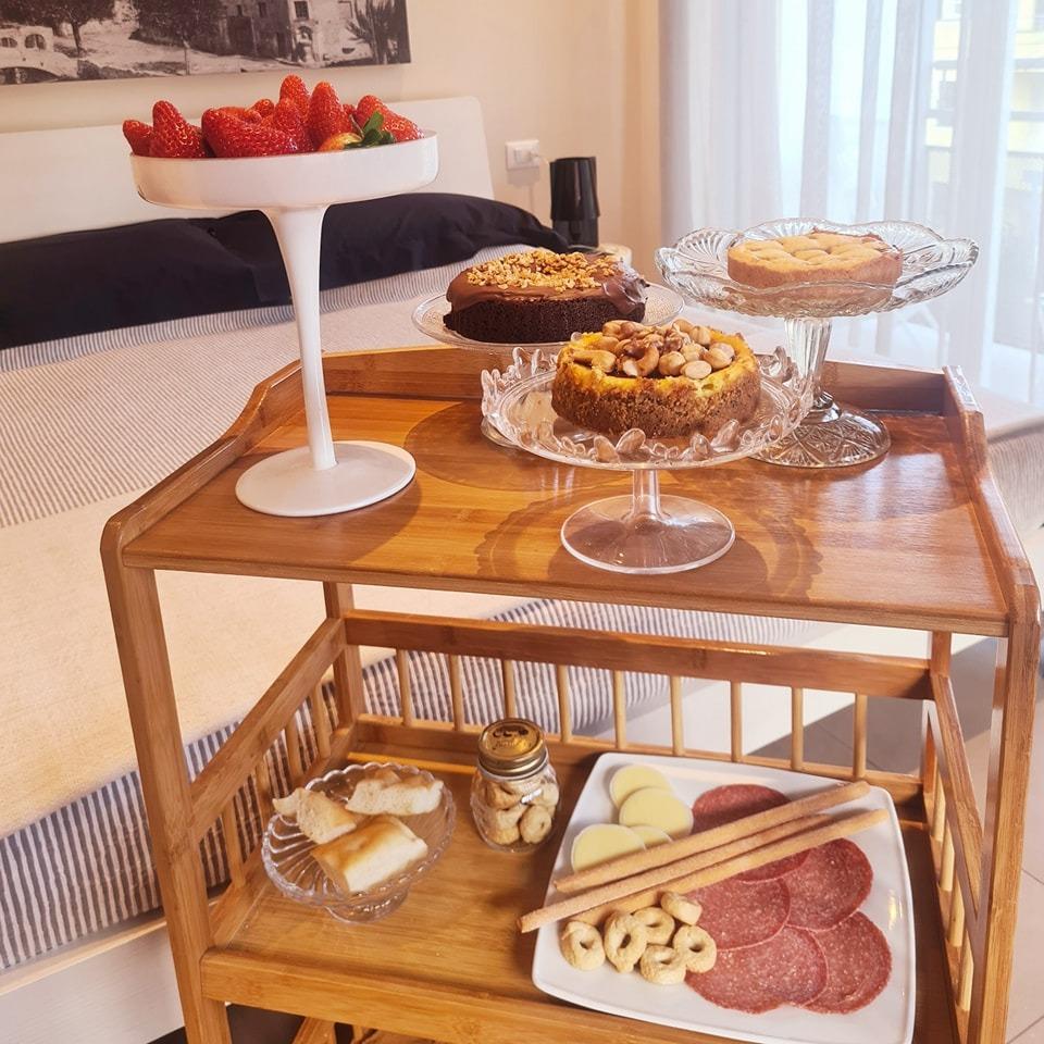 In the morning, as soon as you wake up, you will find a variety of sweet and savoury delights at your disposal, which you can enjoy without having to share them with other guests. Every day, homemade cakes made by me and a wide selection of savoury treats such as toast, sandwiches, appetizers, traditional Ligurian focaccia, and omelettes prepared with local products await you.