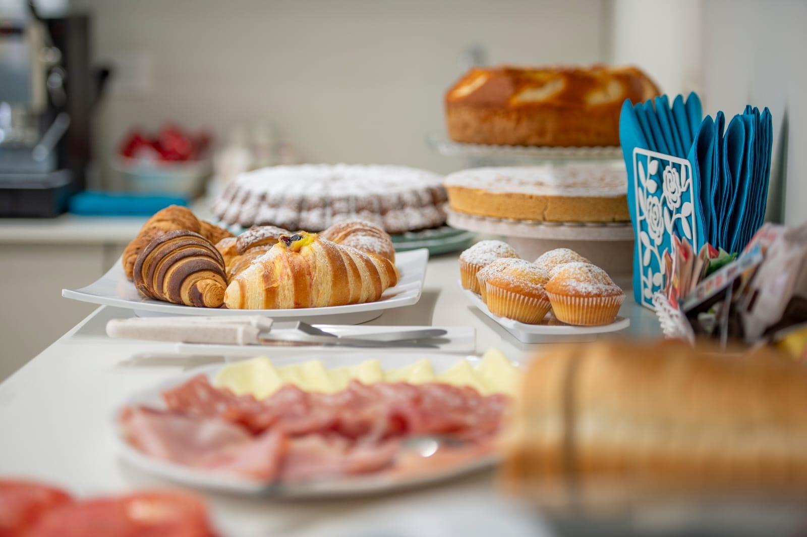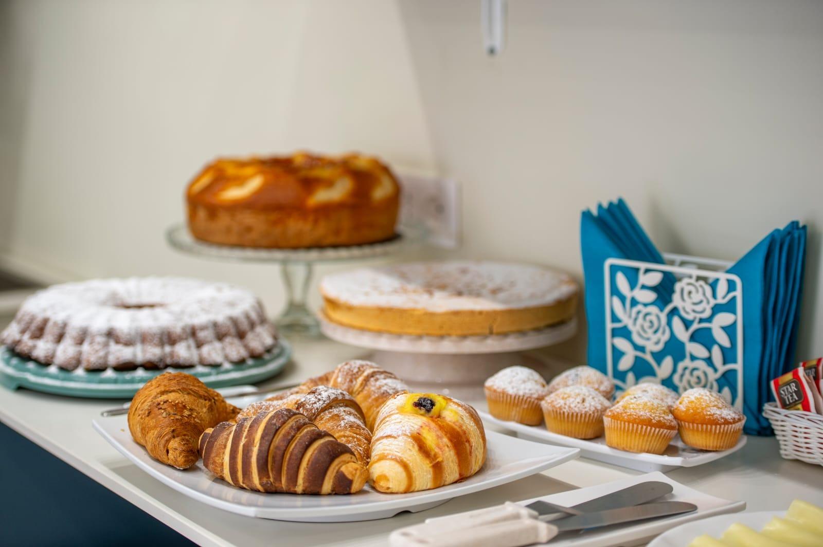 Every morning, breakfast is served with great attention to quality and variety. Homemade pastries are complemented by yogurt, seasonal fruit, and savory specialties like local cheeses, cured meats, and eggs, all accompanied by fresh bread and hot beverages prepared on the spot.