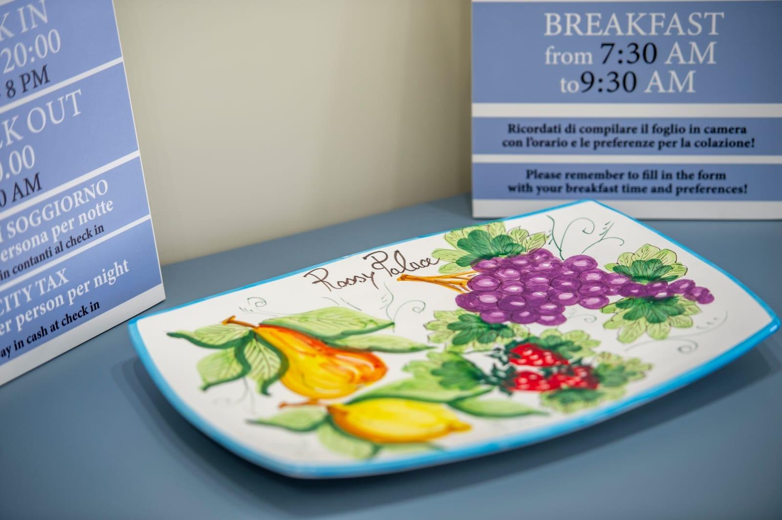Every morning at the Rossy Palace, breakfast is a special occasion, thoughtfully prepared with care and passion to provide guests with a flavorful start to the day. The aromas of warm croissants and homemade pastries blend with the scents of espresso and creamy cappuccino, creating a cozy and inviting atmosphere. There are also yogurt, fresh seasonal fruit, toast, jams, Nutella, and butter for those who prefer to begin their day on a sweet note.