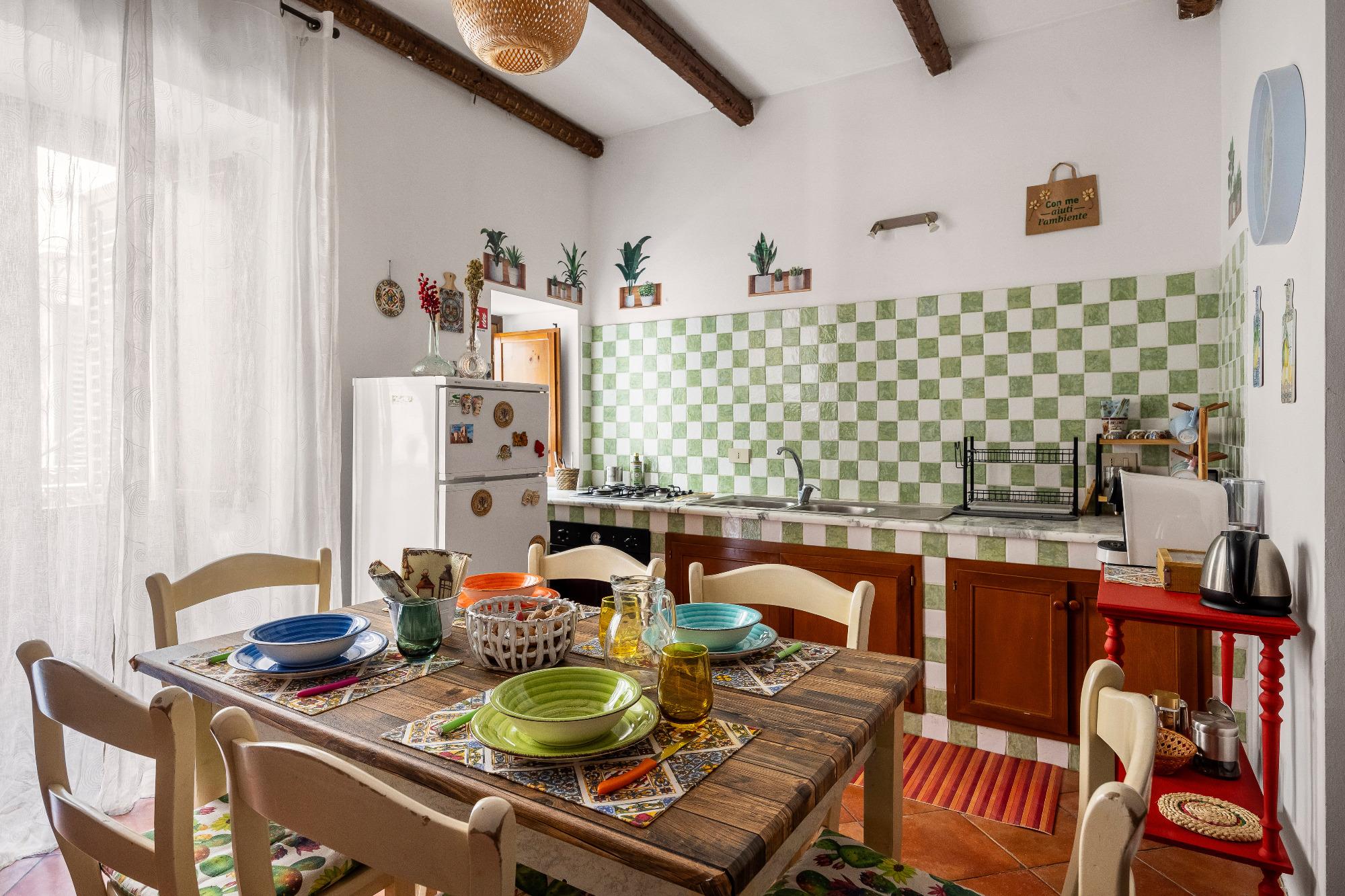 Casa Sabbenerica vi accoglie col suo arredamento moderno e siciliano. Si divide in una zona giorno, con la saletta pranzo, angolo cottura, divano letto, bagno con vasca ed un piccolo balcone; una zona notte, cui si accede tramite una scala a chiocciola, dove troverete una spaziosa camera da letto, una cameretta con letti a castello ed un bagno con doccia.