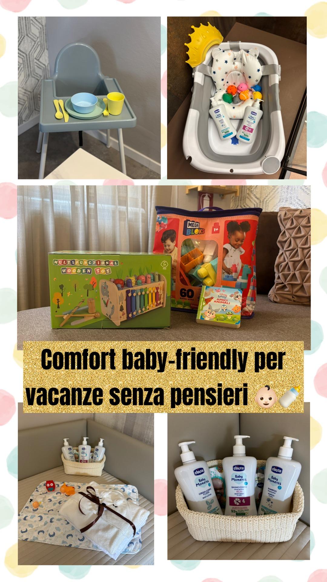 Se presta especial atención a los más pequeños: cuna, trona con utensilios de plástico, bañera con juguetes flotantes, productos específicos para la higiene infantil, cambiadores y juegos seleccionados están disponibles para que la estancia sea tranquila también para las familias.