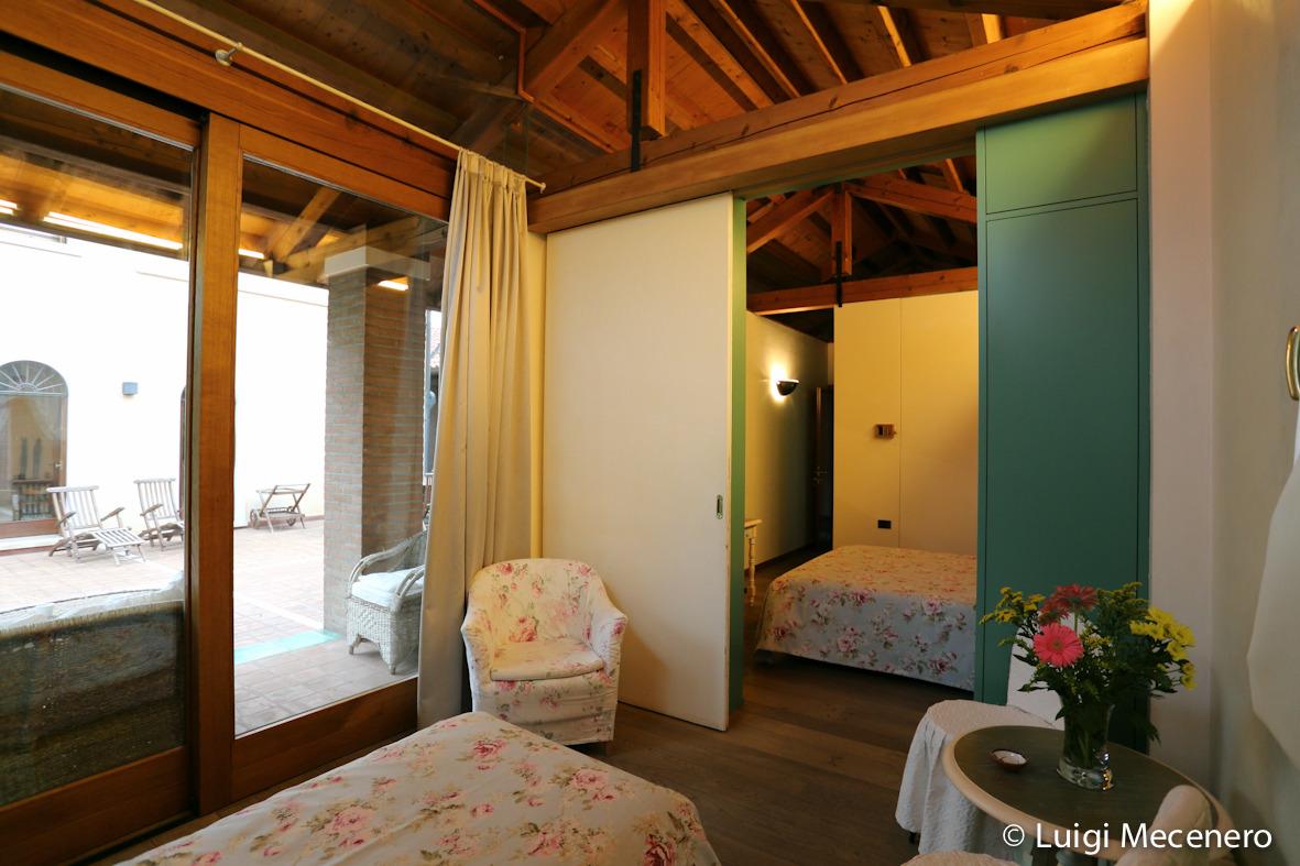 - The Camilla Room, located on the ground floor, has three beds (1 double + 1 single or 3 singles), a bathroom with a shower, a lounge with a large window offering a view of the terrace and TV.