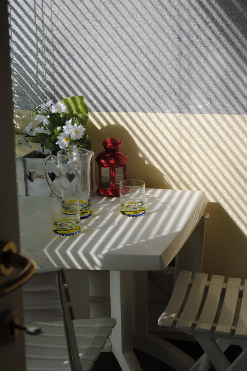 Il soggiorno è dotato di un divano che può diventare un letto singolo o matrimoniale all'occorrenza. Il bagno è provvisto di servizi igienici e doccia. C'è anche un piccolo balcone arredato e utilizzabile. Le finestre sono dotate di zanzariere. L'aria condizionata è disponibile a pagamento, al costo di 8 euro al giorno.