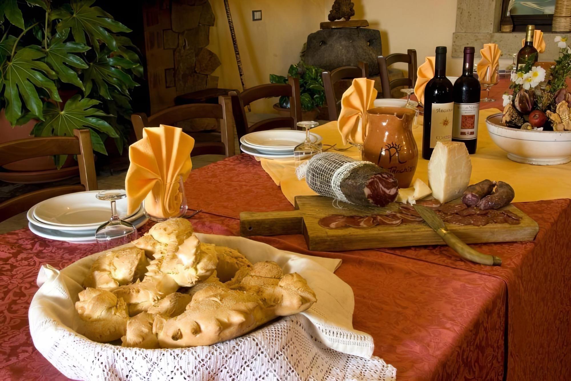 Il ristorante interno è il cuore dell’agriturismo, dove ogni piatto è preparato con ingredienti aziendali o provenienti da produttori locali. La cucina segue la tradizione sarda con pasta fresca fatta in casa, carni e verdure di stagione, formaggi e dolci tipici, arricchiti da oli e vini DOC del Mandrolisai. I menu degustazione e i corsi di cucina permettono di vivere un’esperienza gastronomica completa, che racconta la cultura contadina del territorio attraverso sapori genuini e ricette tramandate nel tempo.