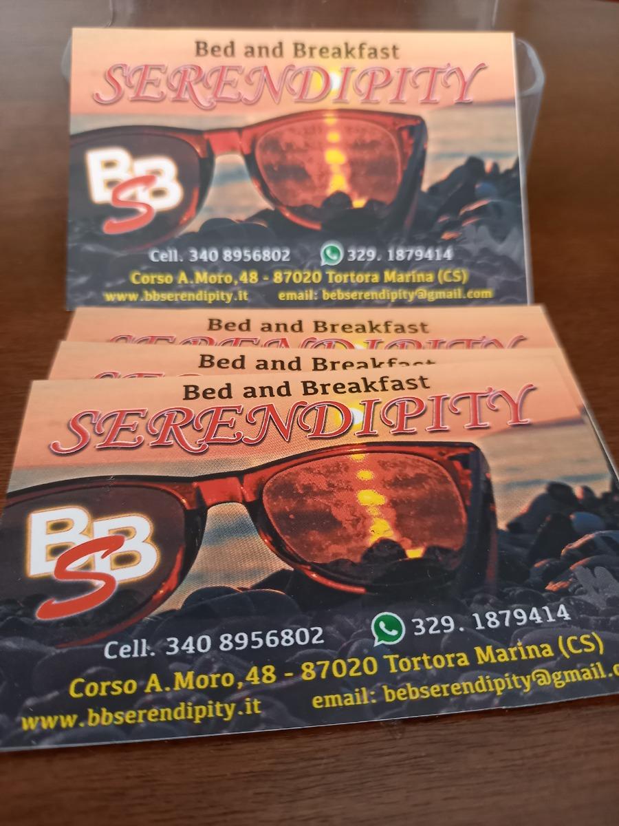 B&B SERENDIPITY it's situated in TORTORA MARINA (CS) IN CALABRIA it's the first urban nucleos of the tirrenic coast, it has four rooms with private bathroom and every comfort all furnished with taste and semplicity, around home a nice garden to relax between the scents of citrus. B&B Serendipity offers for breakfast a rich variety of sweet and salted food. Our services: cleaning room every day, private parking, languages English and French, informative tourist material. The owner, a touristic guide, is able to organize interesting cultural routes in TORTORA and other nice town near it. In addition you can do to spend your time, ecological excursion by bike and by horse, rafting, flying. B&B SERENDIPITY it's not only sea.... but both fun and culture.