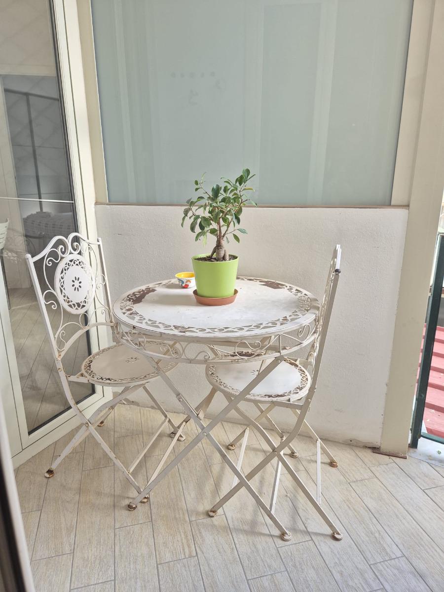 Le due camere da letto, entrambe dotate di letto matrimoniale e bagno privato, garantiscono privacy e comodità agli ospiti. La cucina e il soggiorno sono spazi perfettamente organizzati per rilassarsi o trascorrere del tempo in compagnia: nel soggiorno è presente un comodo divano letto e una TV Samsung da 55 pollici. Un delizioso balconcino arredato con tavolino e sedie in stile Art Nouveau offre un angolo ideale per godersi l’aria fresca.