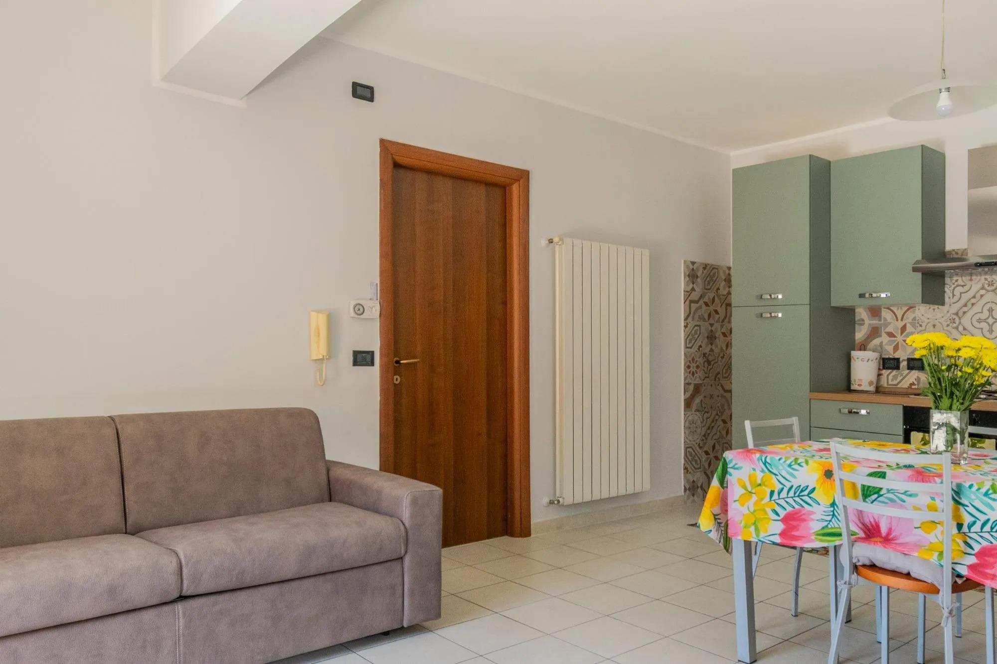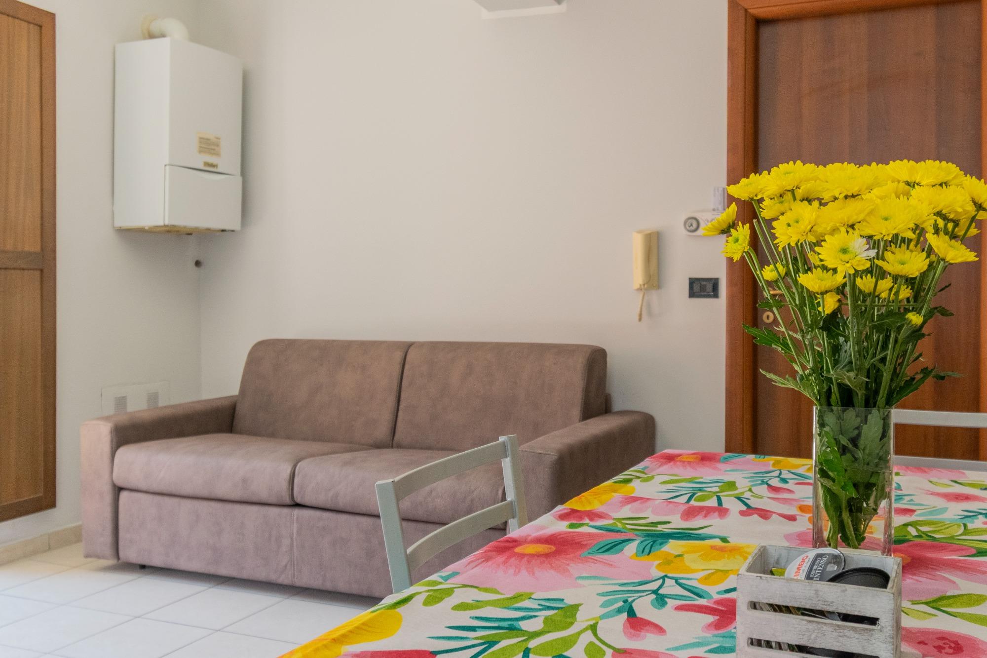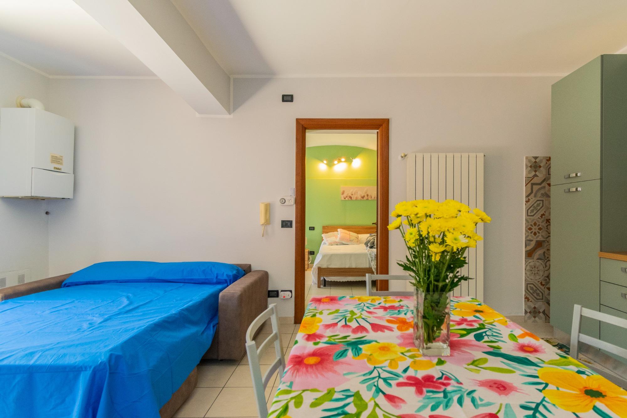 Los espacios están cuidadosamente diseñados y concebidos para garantizar funcionalidad y bienestar. La sala de estar, con cocina equipada, se complementa con un cómodo sofá cama, mientras que la habitación matrimonial y el baño aseguran privacidad y descanso. La ubicación es ideal: a aproximadamente un kilómetro del centro de la ciudad y a solo cinco minutos a pie de las paradas de autobús. En los alrededores se encuentran supermercado, cafeterías, oficina de correos, farmacia y iglesia, lo que hace que la estancia sea aún más conveniente.