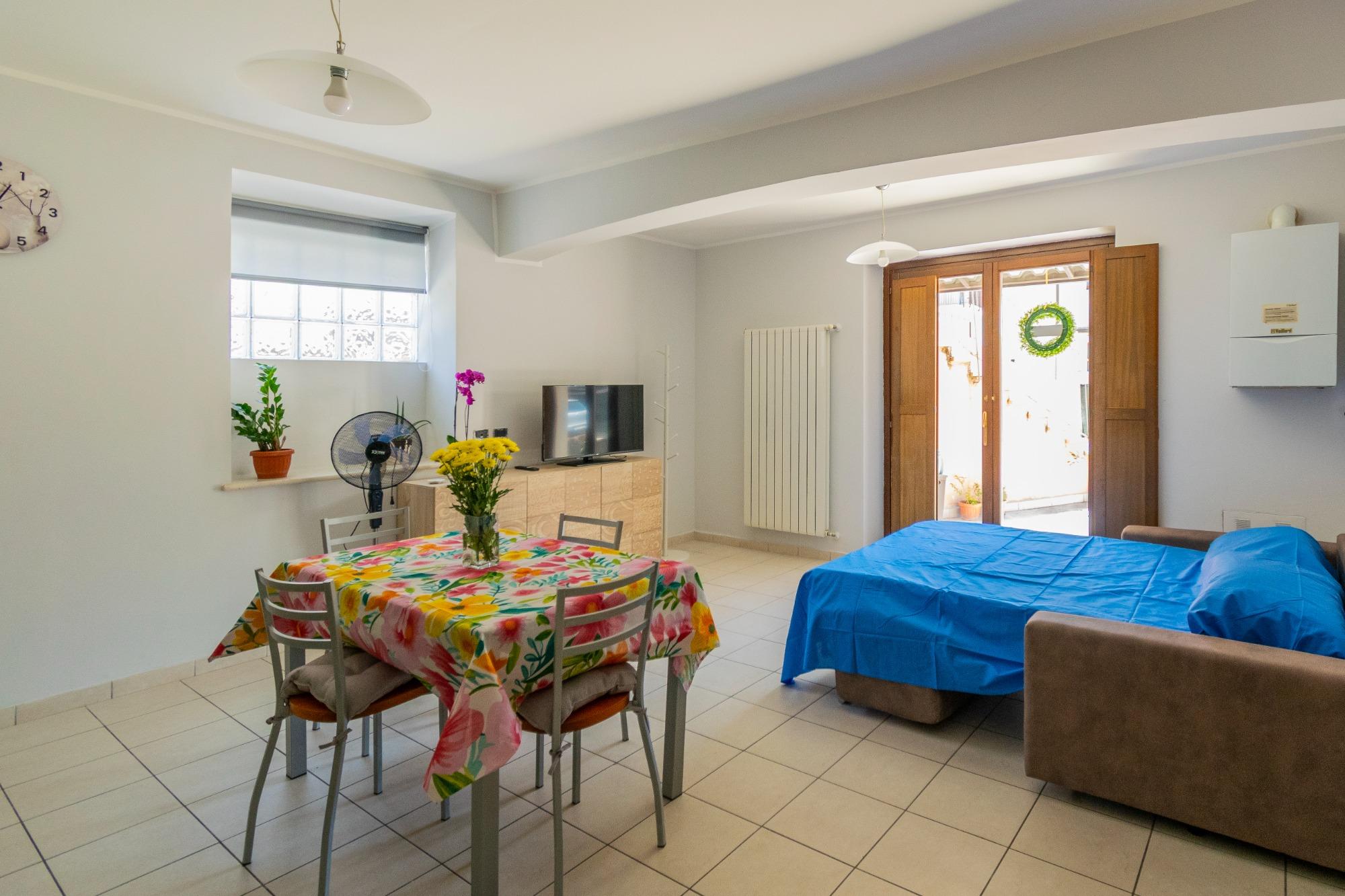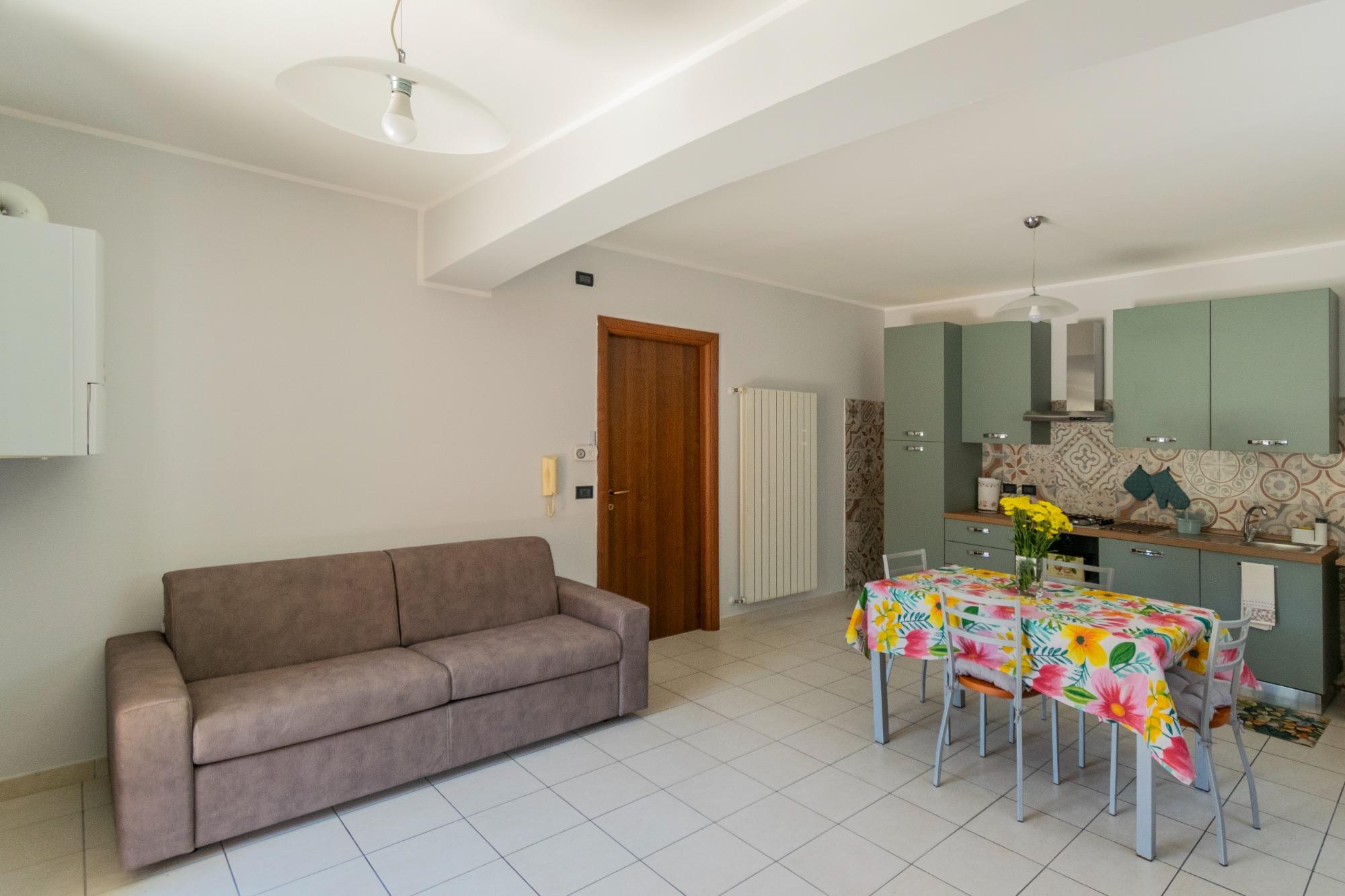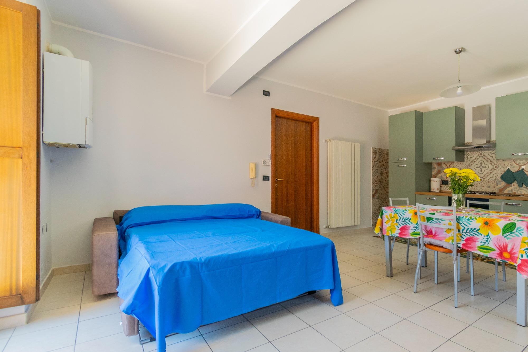 Los espacios están cuidadosamente diseñados y concebidos para garantizar funcionalidad y bienestar. La sala de estar, con cocina equipada, se complementa con un cómodo sofá cama, mientras que la habitación matrimonial y el baño aseguran privacidad y descanso. La ubicación es ideal: a aproximadamente un kilómetro del centro de la ciudad y a solo cinco minutos a pie de las paradas de autobús. En los alrededores se encuentran supermercado, cafeterías, oficina de correos, farmacia y iglesia, lo que hace que la estancia sea aún más conveniente.