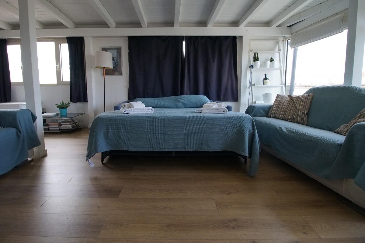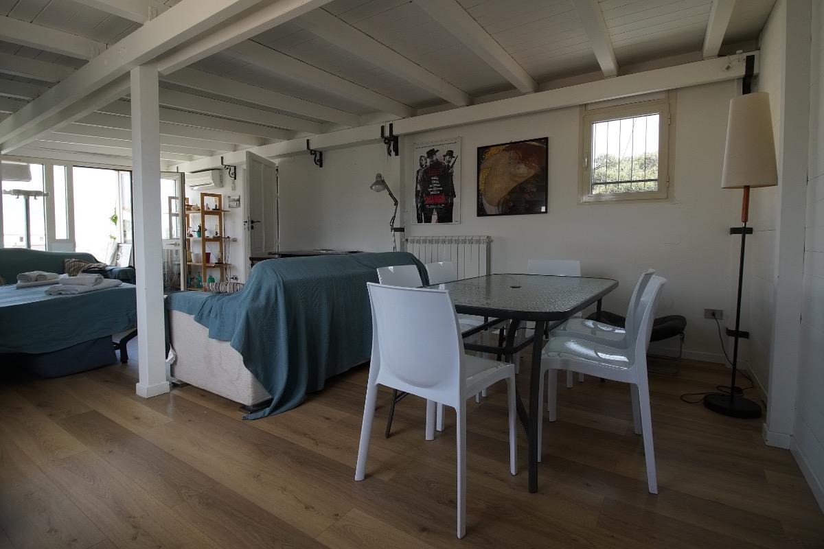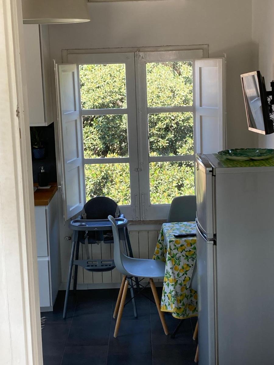 The interior, recently renovated with luxurious touches, features an open layout that includes a sofa, a sofa bed, a bedroom, a kitchen, and a bathroom. It offers a private and relaxing atmosphere, ideal for an elegant and comfortable stay in a distinctive setting that blends history with modern comfort.
