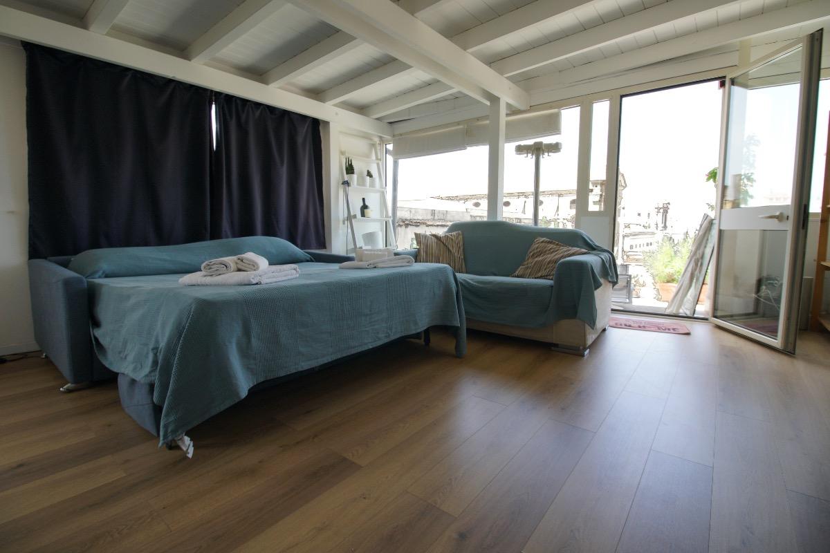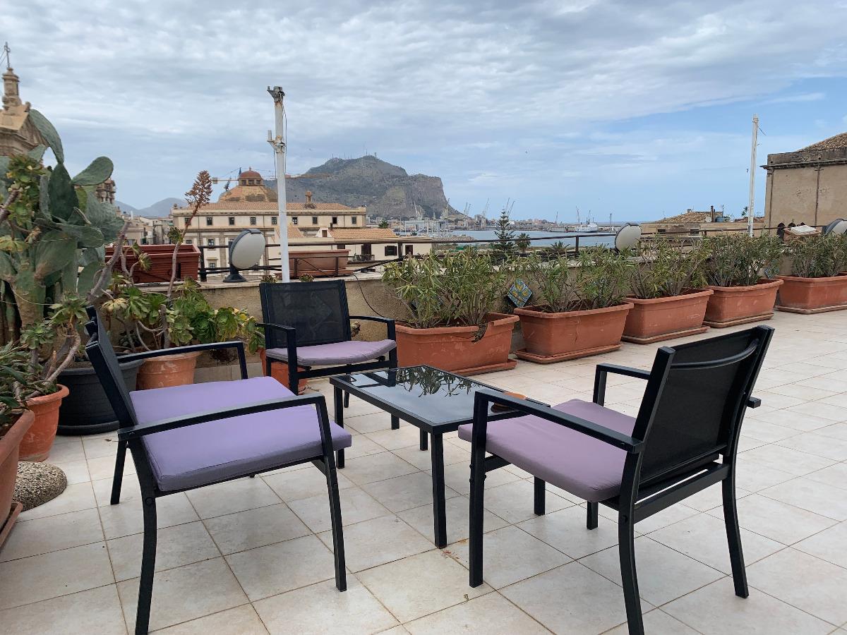 Located in the heart of the historic center, this charming loft offers the opportunity to explore Palermo on foot, allowing you to immerse yourself in every picturesque corner of the city. The beautiful terrace overlooks the scenic Piazza Kalsa, providing a unique view of the Church of Santa Maria alla Kalsa, Mount Pellegrino, and the sea, creating the perfect setting for enjoying a memorable breakfast, lunch, or evening.