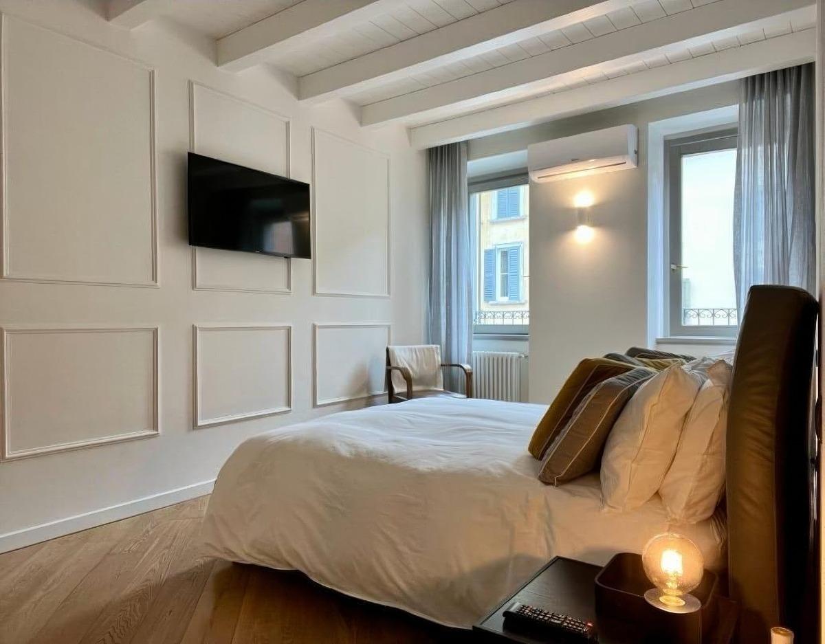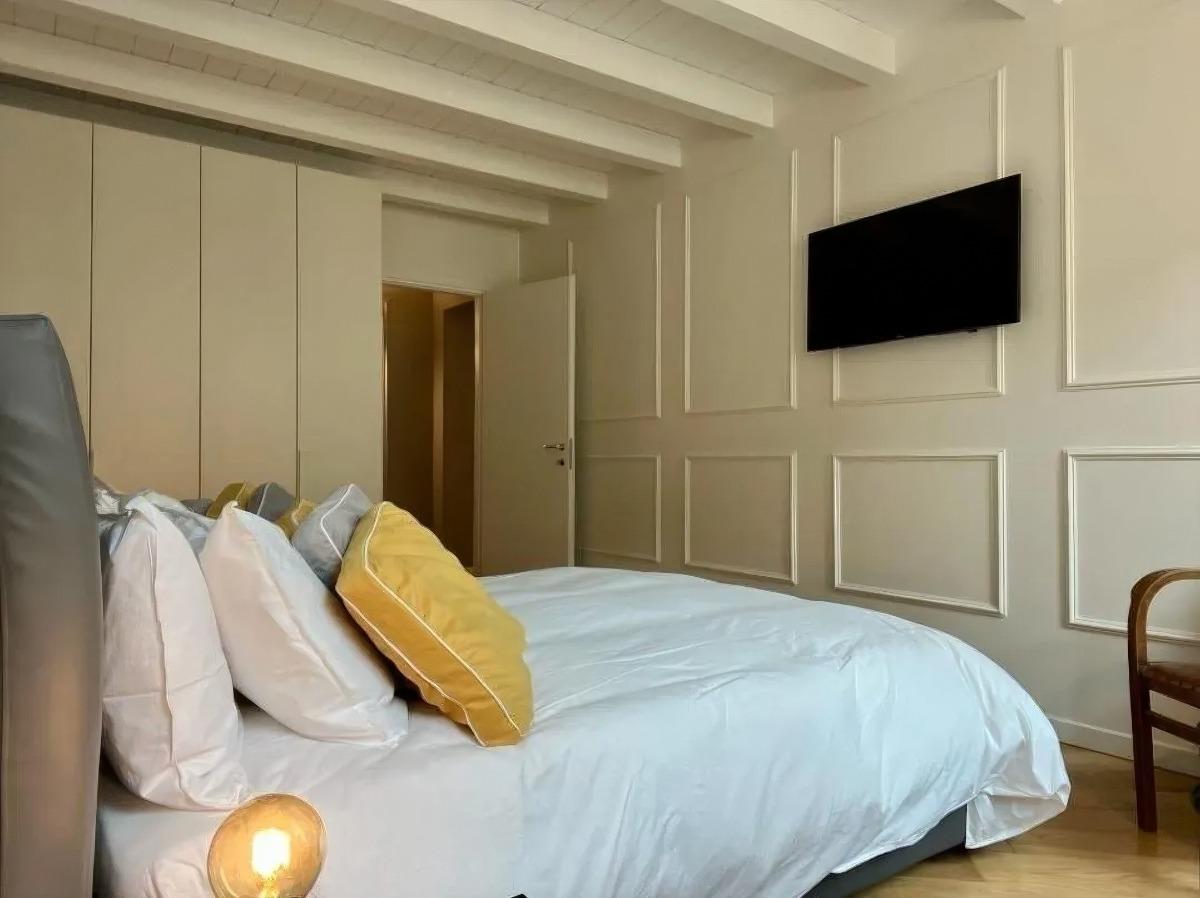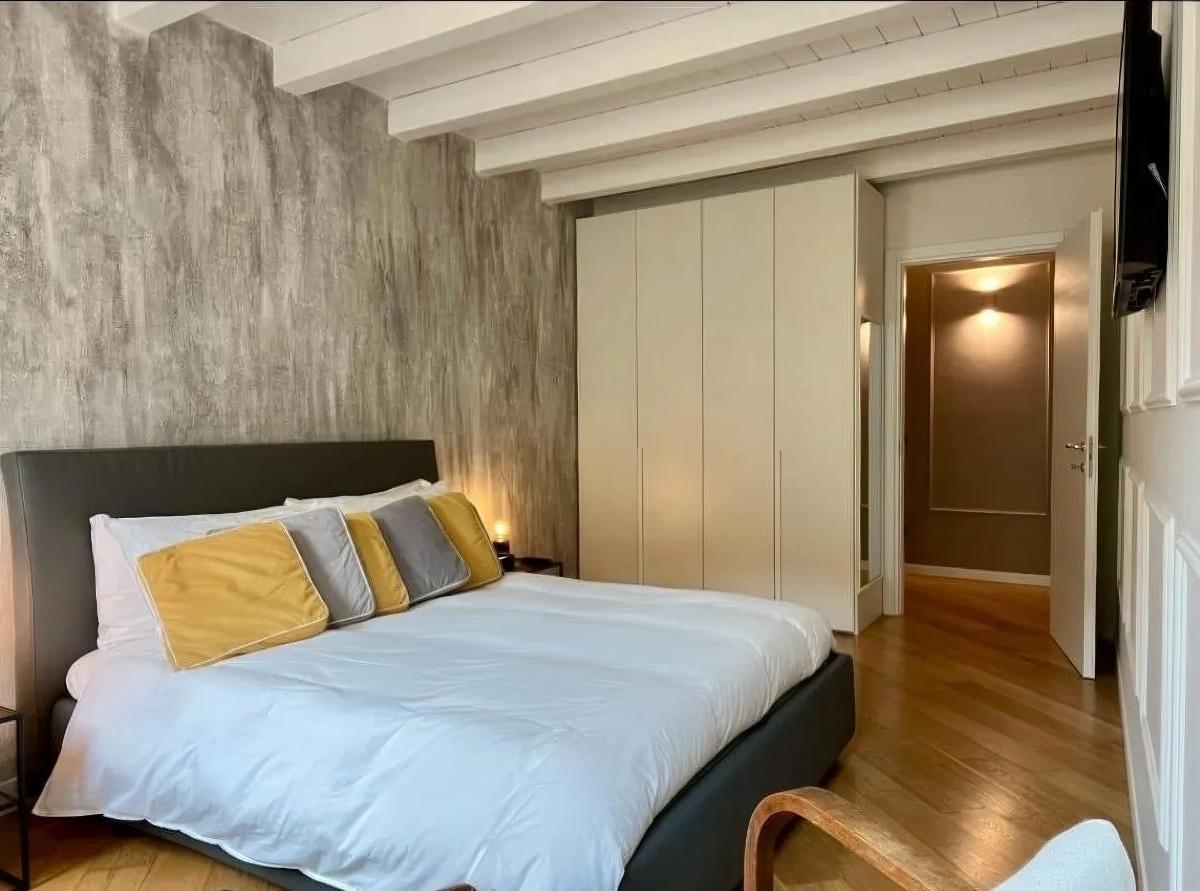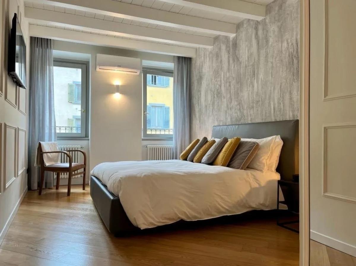 Suite Moroni is a stylish apartment measuring 78 square meters, located in the heart of Bergamo, within the vibrant San Leonardo neighborhood, known for its rich history, artisan shops, churches, and boutiques. The accommodation is situated on the second floor of an old building equipped with an elevator, ensuring comfort and convenience.