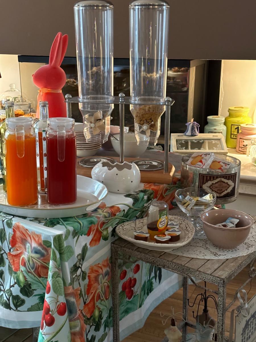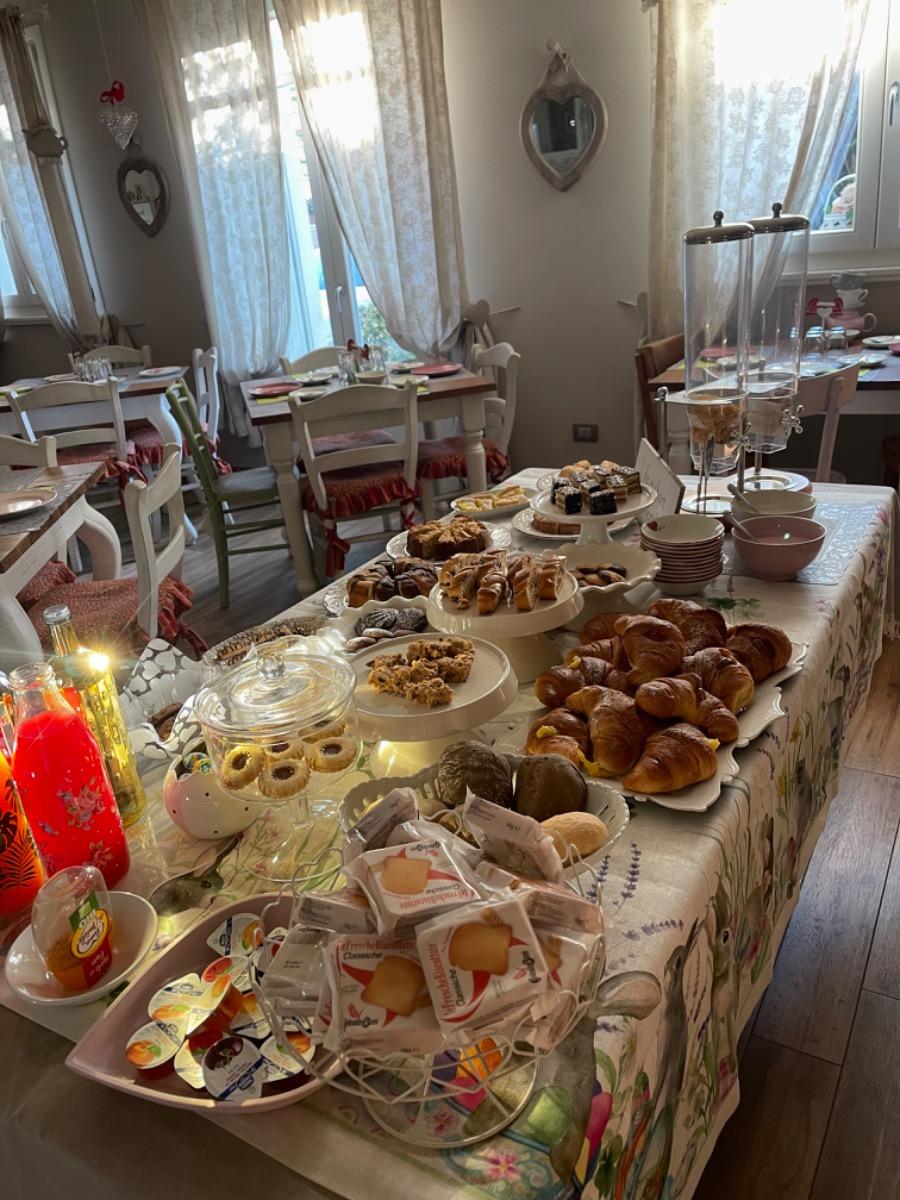 La colazione abbondante che vi offriamo è tipicamente italiana e comprende croissant, torte fatte in casa, crostate, biscotti, yogurt, cereali di ogni tipo, succhi di frutta, e naturalmente caffè fatto in casa, latte, tè di ogni genere e cappuccino. Ogni giorno troverete un piatto diverso e una tazza dai vivaci colori per fare colazione in un'atmosfera piacevole e gustosa.