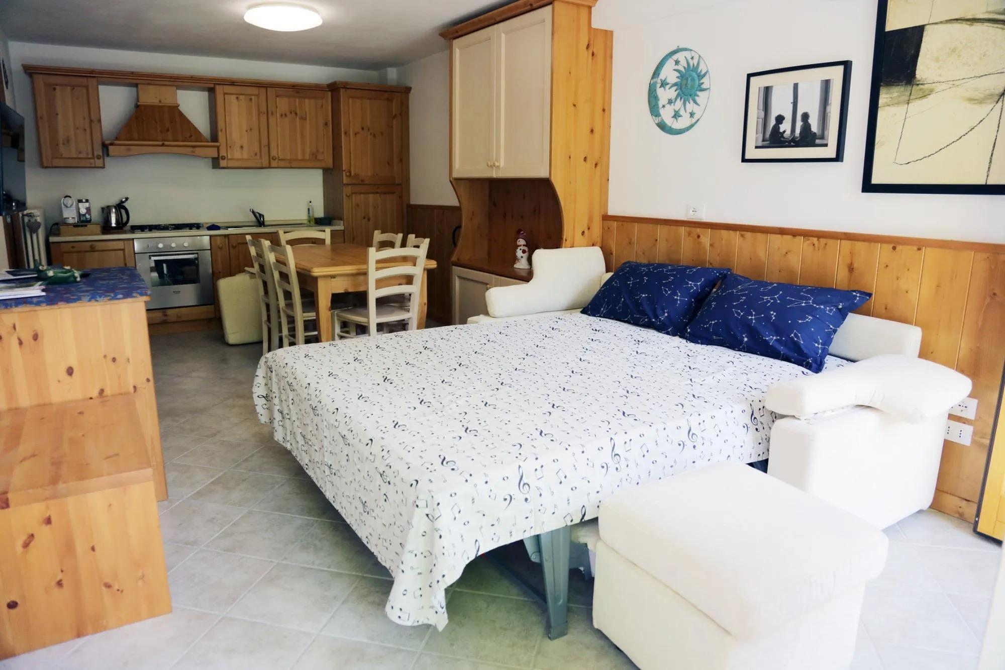 Sun&Moon Apartments welcomes guests for the first time in a cozy and well-appointed two-room apartment measuring 55 square meters, located just a few minutes' walk from the center of Aprica and conveniently situated near the Magnolta cable car, the municipal swimming pool, and the free ski bus. Whether in summer or winter, its location is perfect for those who want to experience the mountains at a leisurely pace or engage in sports activities, surrounded by ski slopes, scenic trails, and natural parks.