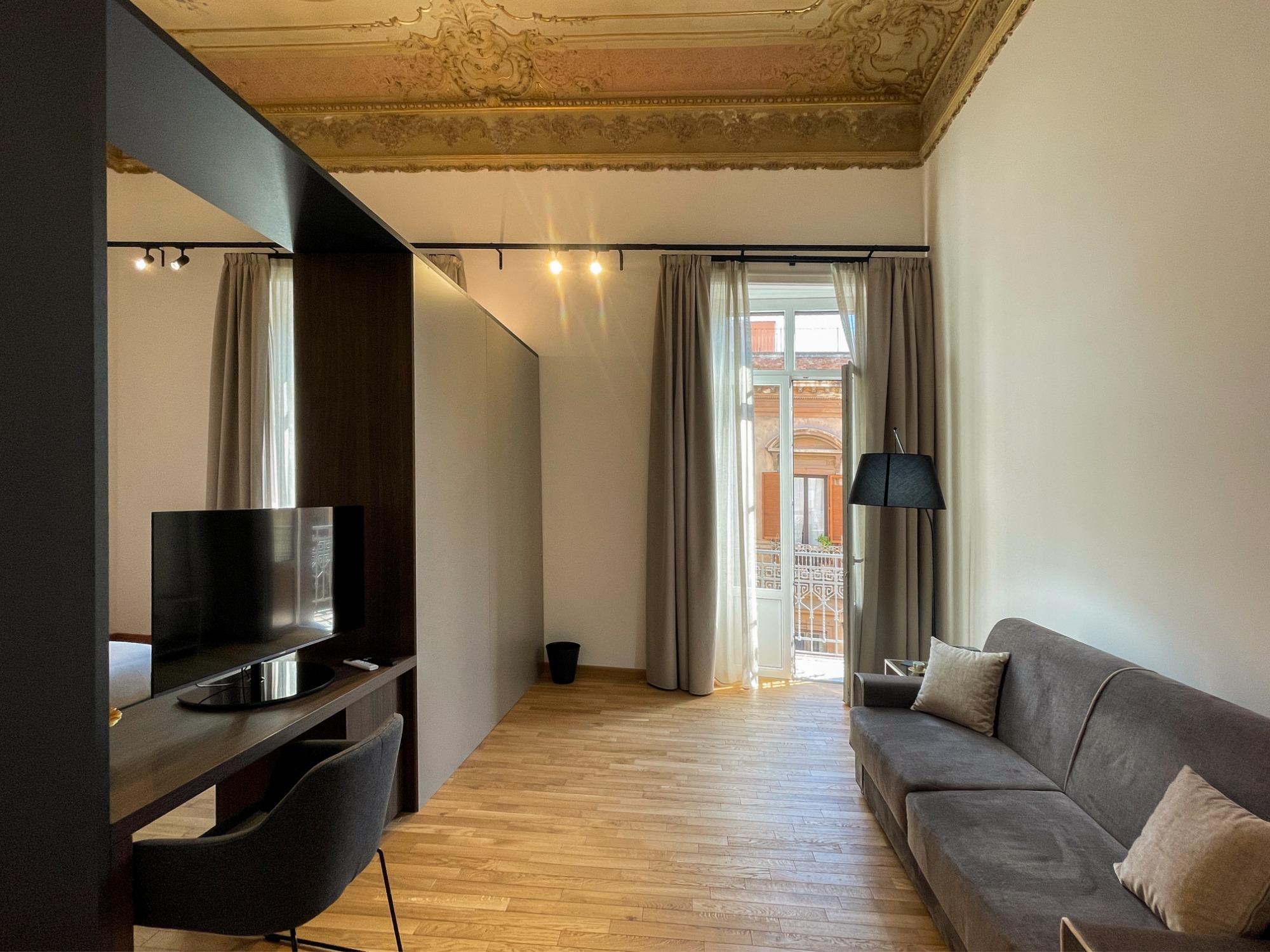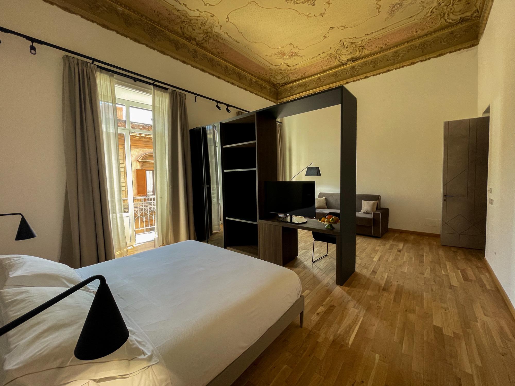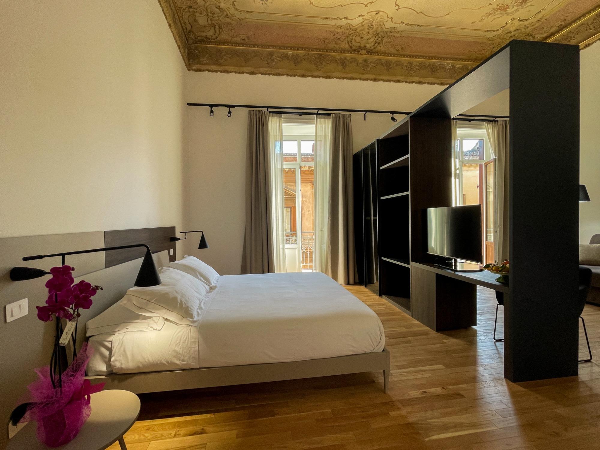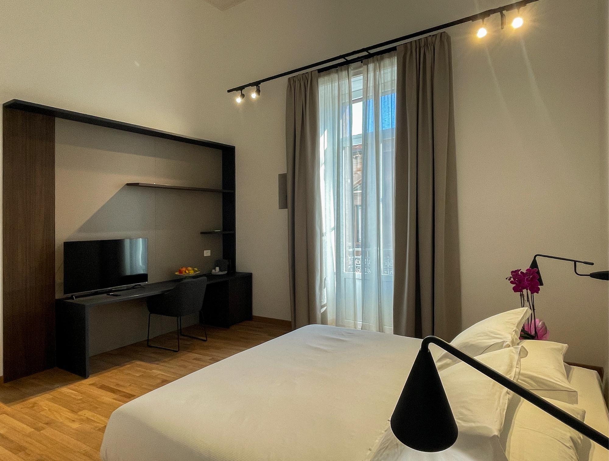 Le camere sono spaziose e dotate di tutti i principali comfort, pensati per accompagnare ogni momento del soggiorno con praticità e relax. Ogni spazio è progettato per offrire privacy, silenzio e una sensazione di accoglienza discreta, ideale sia per chi visita la città per piacere sia per chi viaggia per lavoro.
