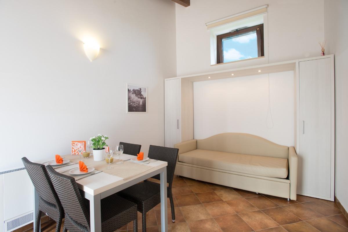 The "Apricot" apartment accommodates 2 people and is accessible to people with disabilities. The apartment is equipped with a bathroom with a shower and a courtesy kit with soaps, shampoo, shower gel, LED TV, air conditioning, Wi-Fi, and a minibar. The location of the apartment, which includes a kitchen and dining area, allows you to enjoy the comfort of the property in the peaceful atmosphere offered by the masseria. The neutral tones of the furniture contribute to the overall relaxation, enhancing the colors of the surrounding nature
