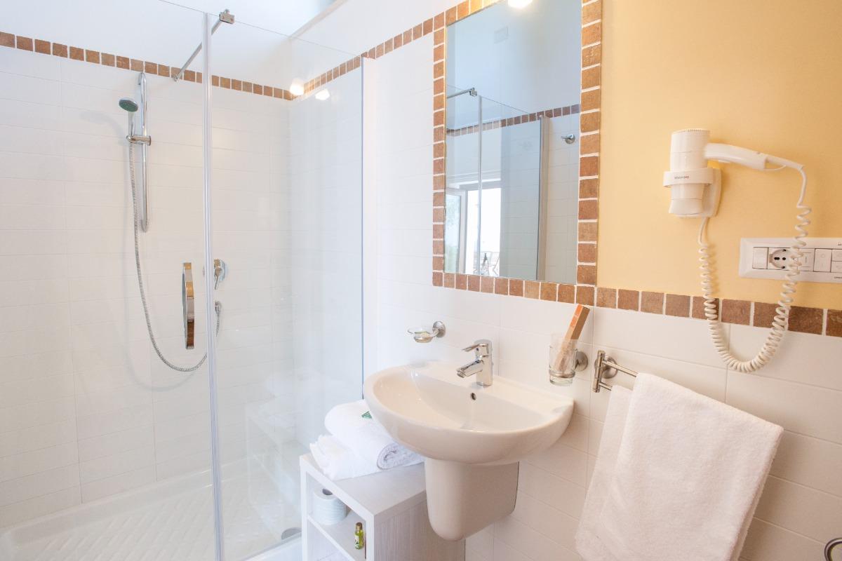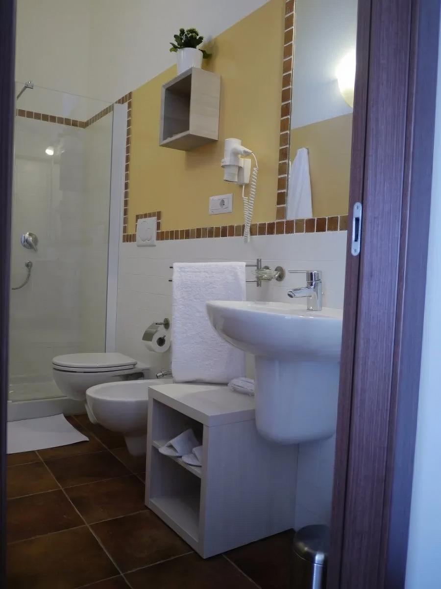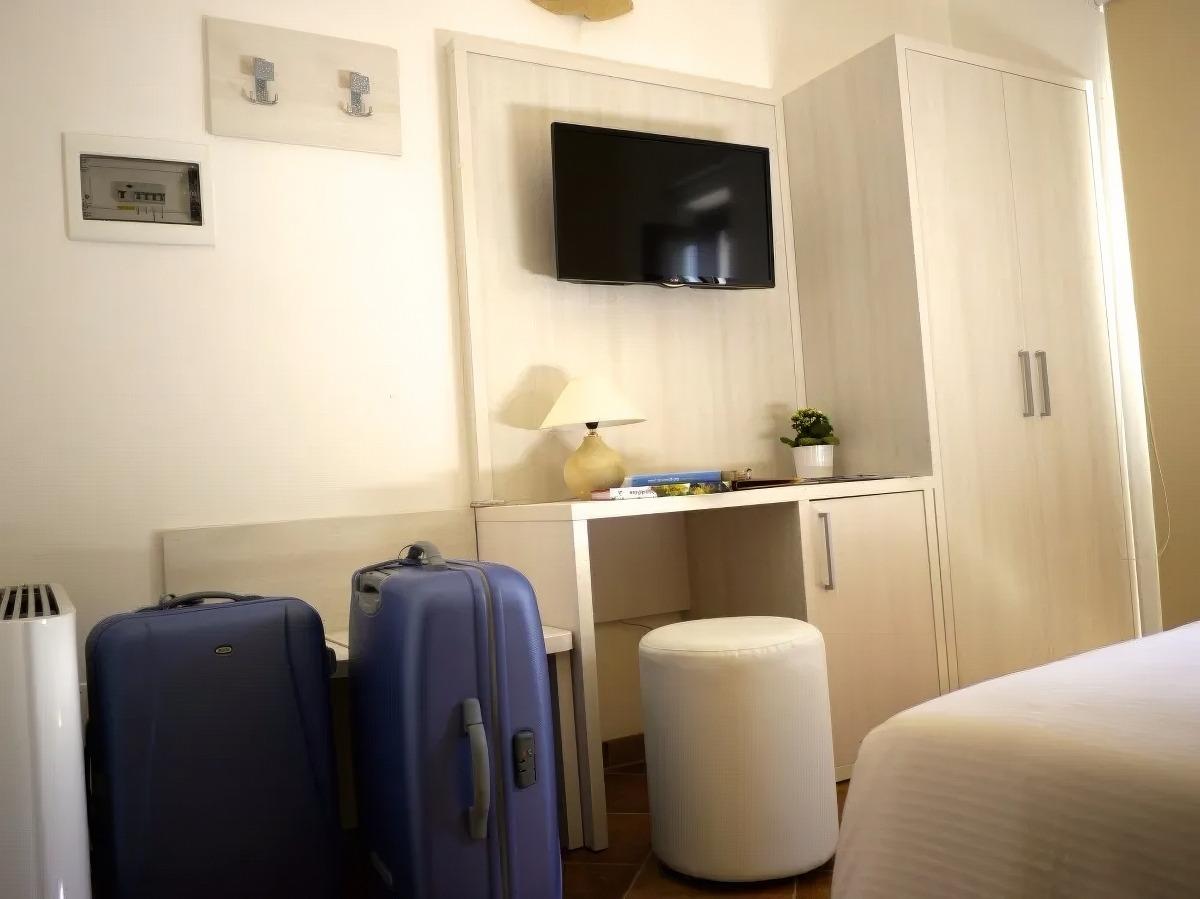 The Almond room has contemporary furniture in neutral colors. This bright room overlooks the courtyard with two olive trees, and it has a bathroom with shower equipped with courtesy kit with bio soap, shampoo, shower gel and creams, TV Led 32 “, air conditioning, Internet WI-FI, safe and mini bar
