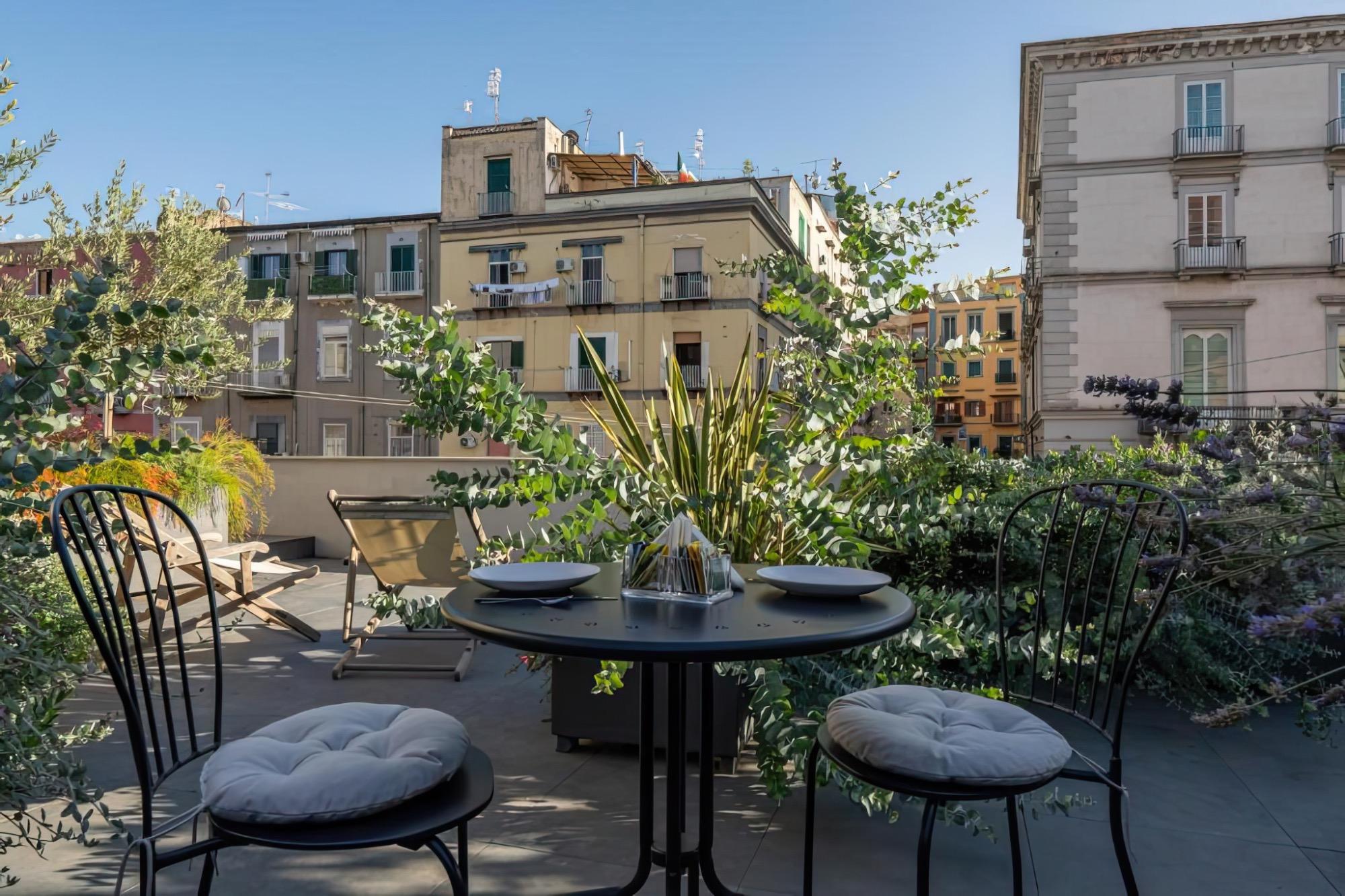 Dolci fragranti, bevande calde, succhi e altre specialità accompagnano un momento pensato per offrire energia e gusto prima di partire alla scoperta di Napoli. Nelle giornate più miti, la terrazza diventa il luogo ideale per concedersi una colazione all’aperto, circondati da un’atmosfera tranquilla e accogliente.