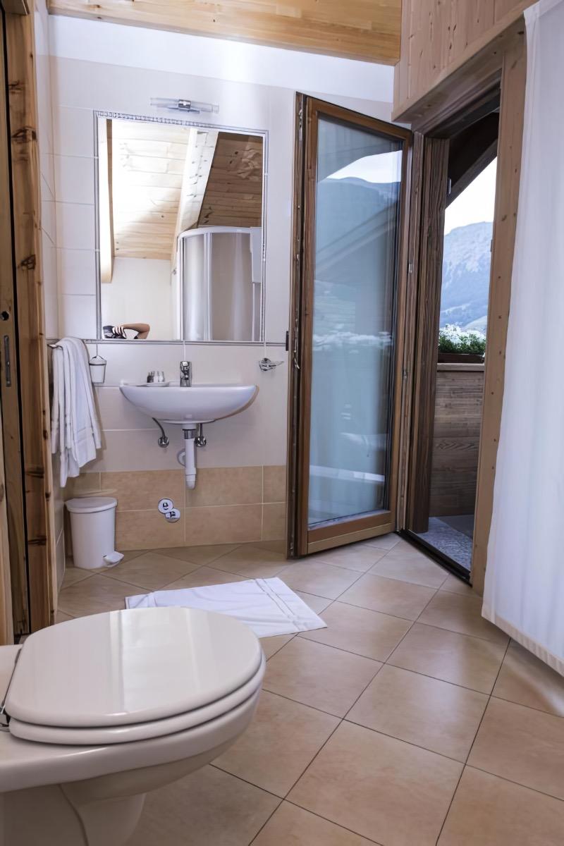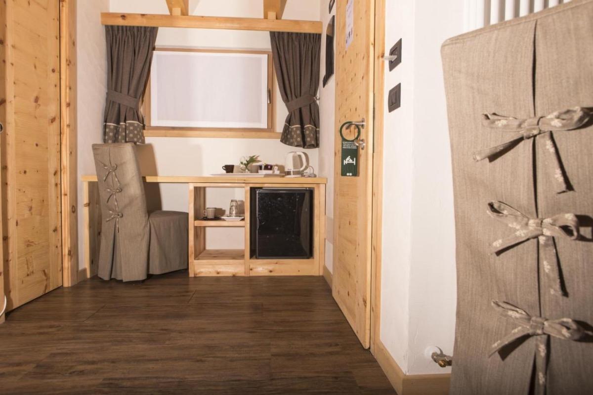 Double/twin, triple/quadruple or family rooms, exposed beams, desk, bathroom with shower box, hairdryer, toiletries, safe, satellite LCD TV, wooden balcony with breathtaking views of the Livigno valley and the cross-country ski track.