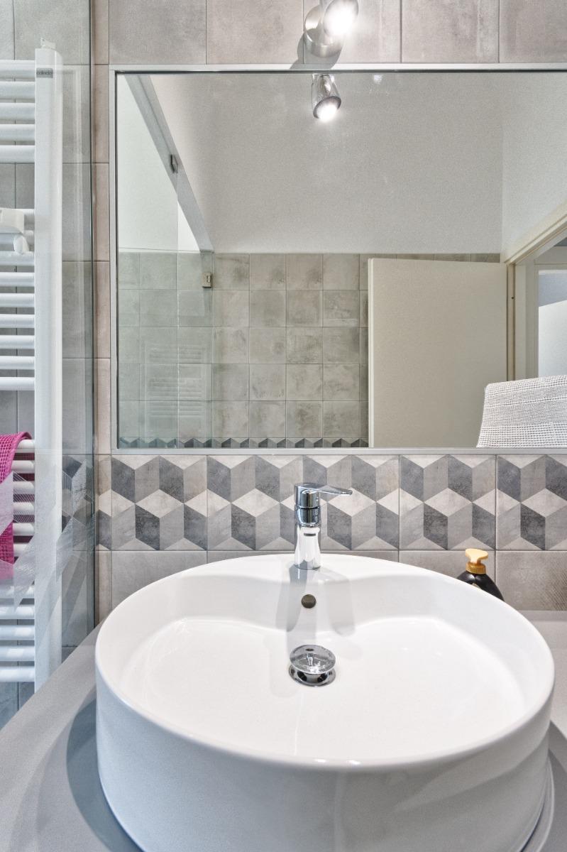La nostra cucina modernissima è attrezzata con una lavastoviglie, un forno a microonde e tutto il necessario per cucinare i vostri piatti preferiti. La camera da letto è intima e accogliente, mentre il bagno di design offre un ampio piano lavabo, una grande e confortevole doccia, un bidet e una lavatrice a vostra disposizione.