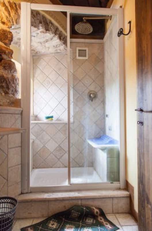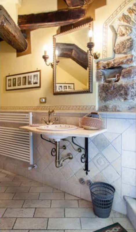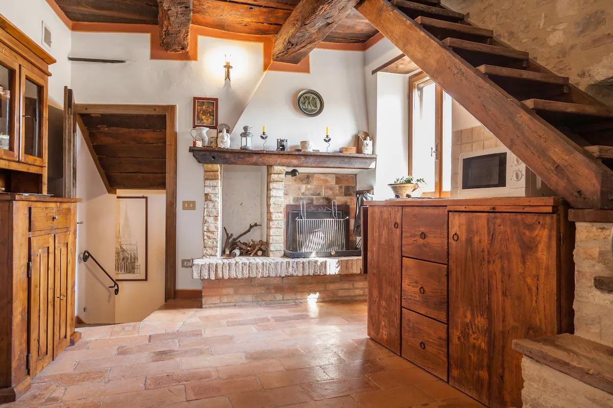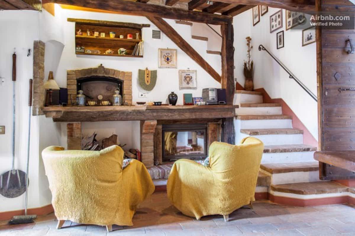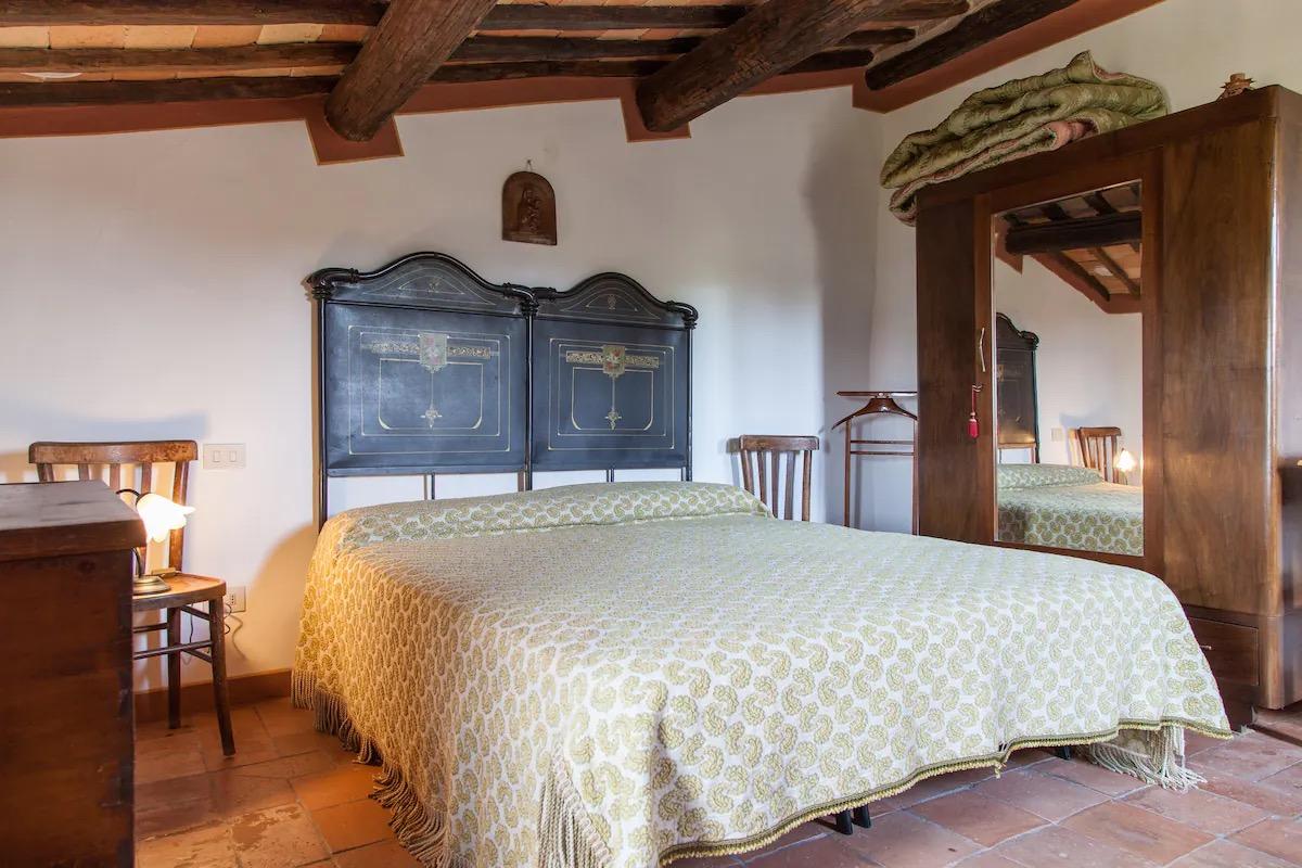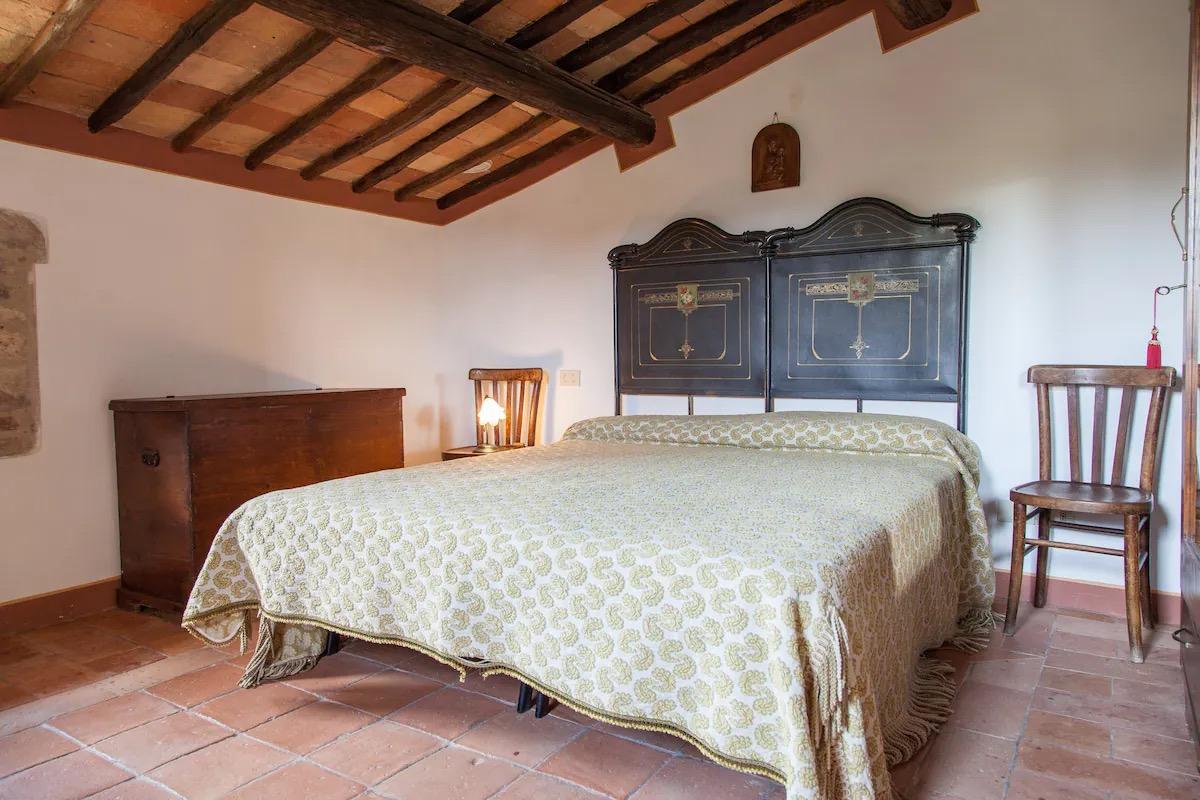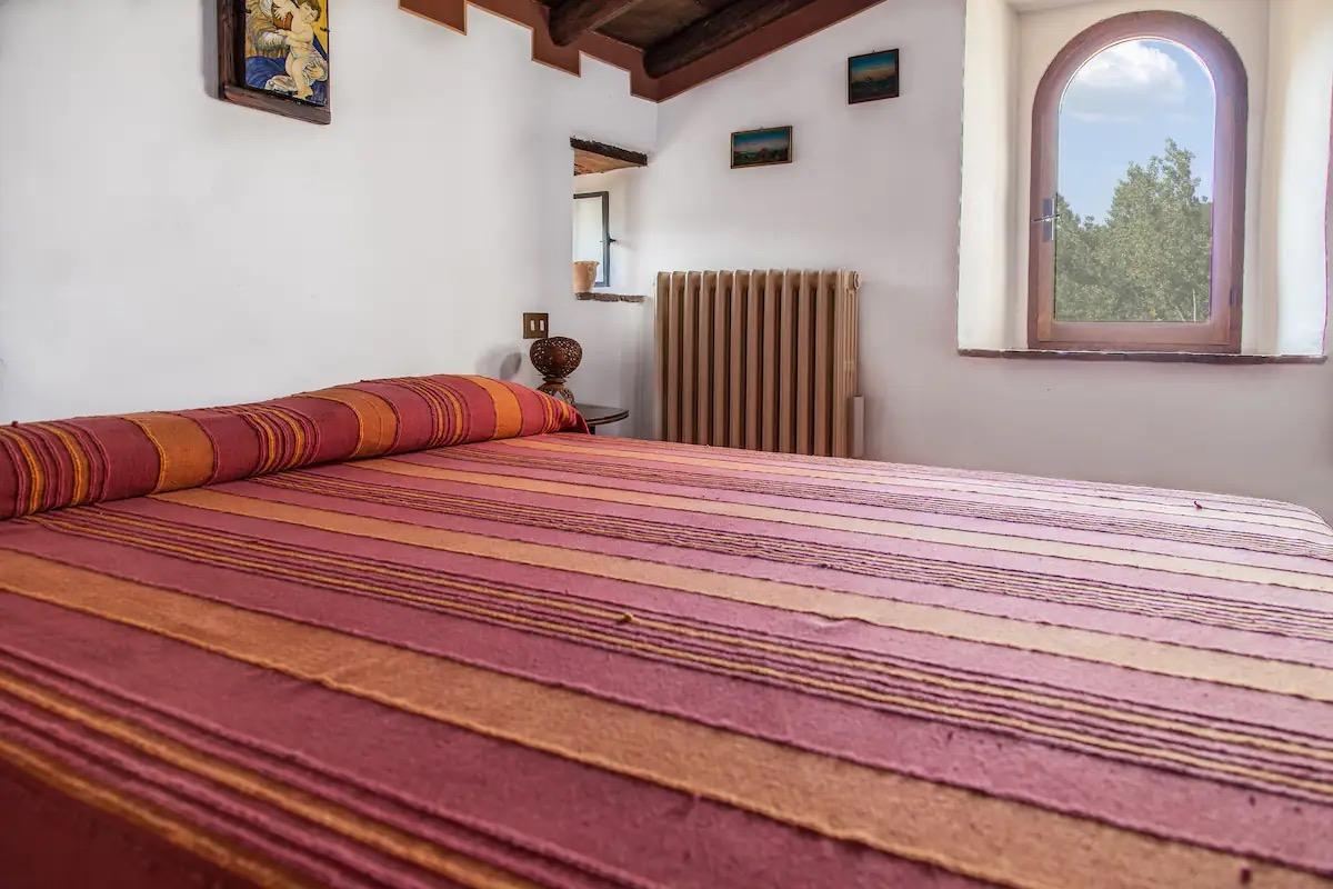 Les chambres, meublées en «arte povera», sont réparties sur cinq étages et chacune des trois chambres doubles est équipée d'une salle de bains privée. Elles peuvent être divisées en deux unités distinctes, chacune avec son coin cuisine et sa cheminée.