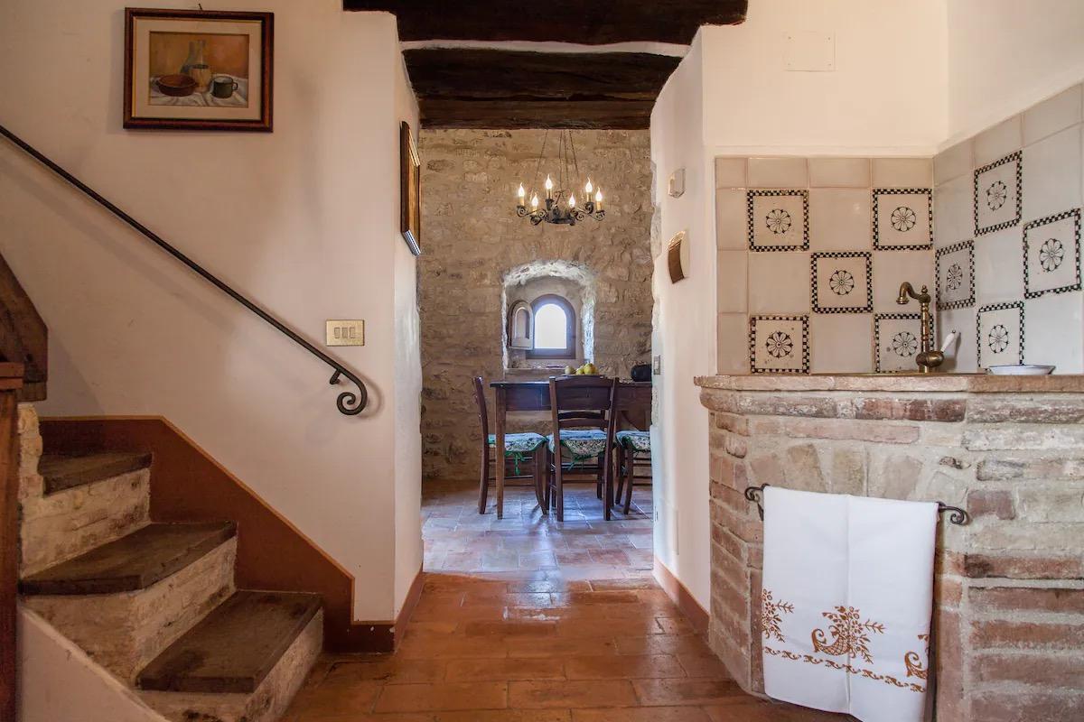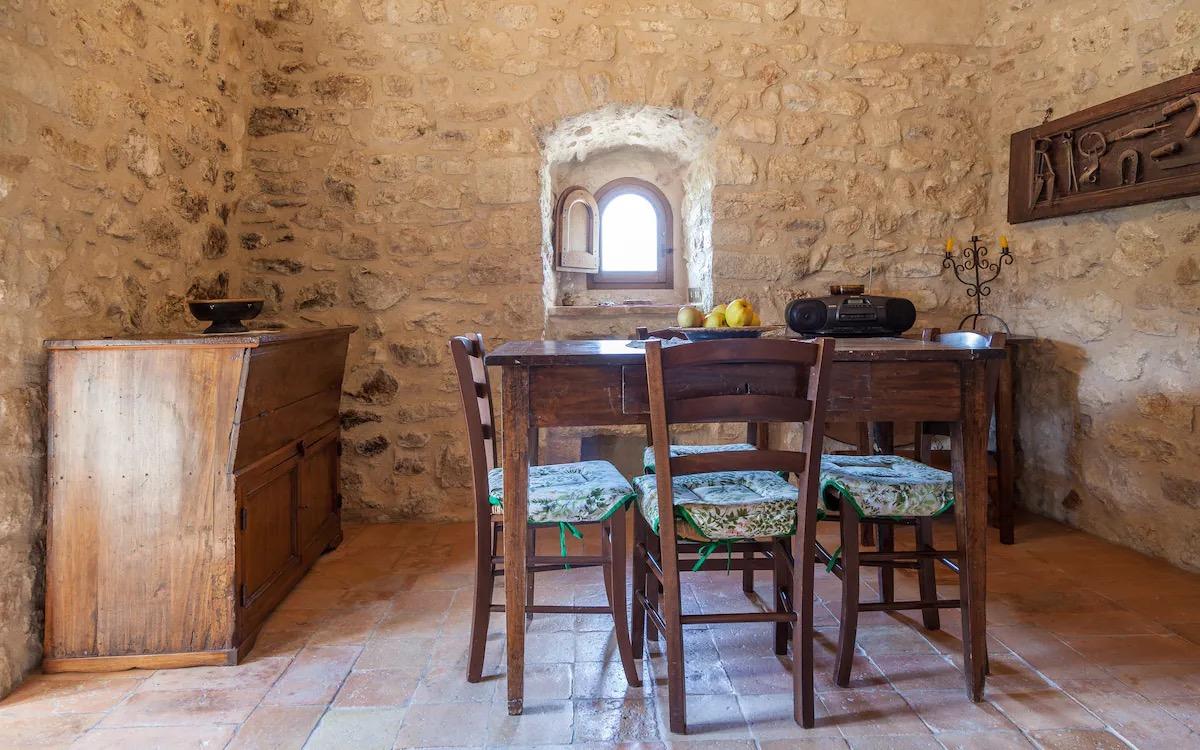 Les fenêtres et la terrasse de la tour donnent sur le petit village médiéval, où le temps semble s’être arrêté et sur les collines de la campagne environnante.