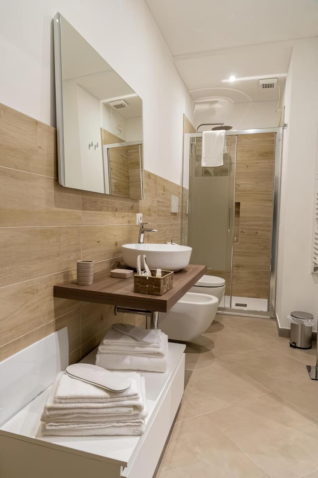 The sleeping area features a charming loft with a bedroom, while the bathroom includes a shower and bidet. Guests have access to towels, bed linens, and, upon request, a crib for infants. The apartment is air-conditioned and offers free Wi-Fi, ensuring a pleasant stay for both short and long visits.