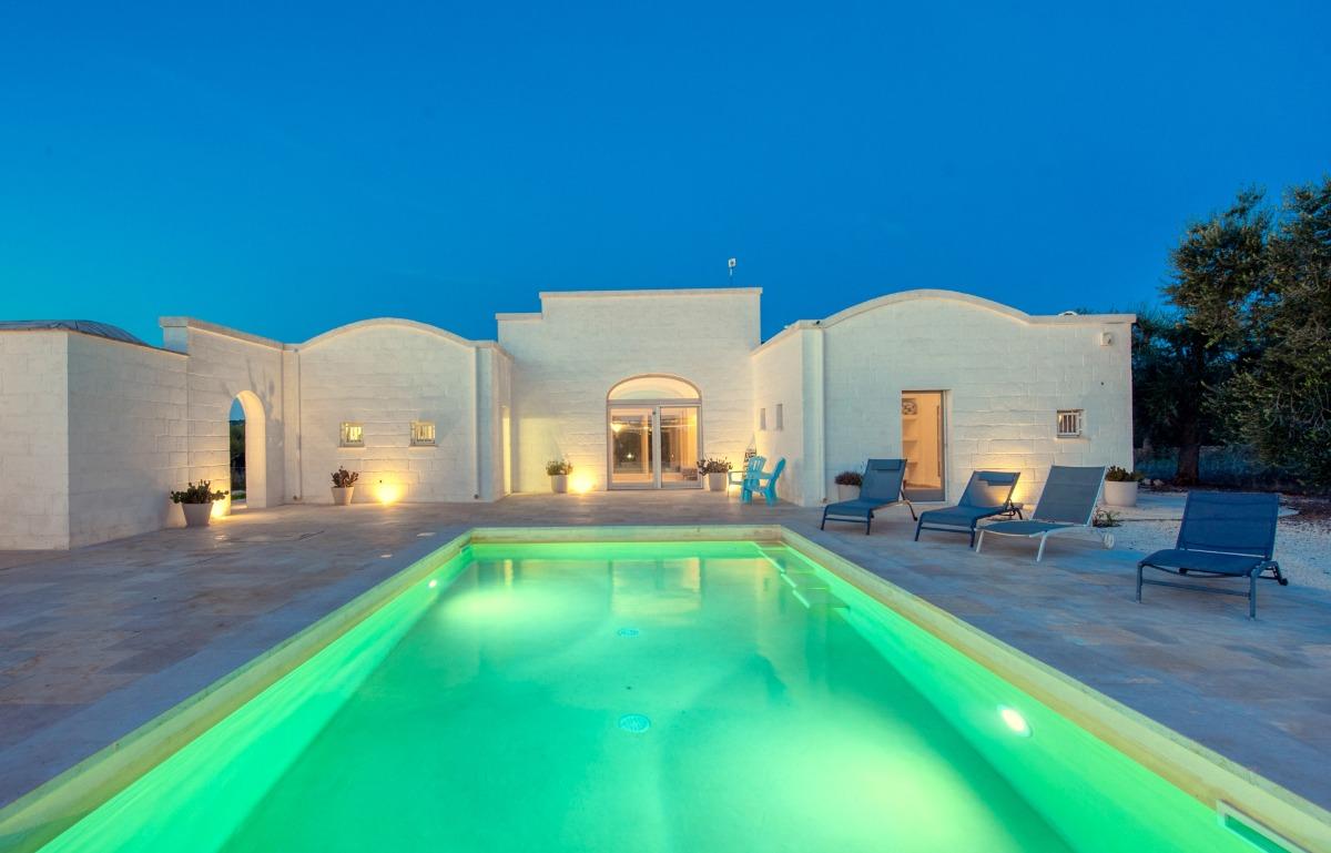 Questa meravigliosa proprietà si trova nella suggestiva campagna della Valle d'Itria, conosciuta anche come la valle dei trulli. È situata a breve distanza dai centri storici di Ostuni, conosciuta come "la Città Bianca", Locorotondo e Cisternino, che fanno parte dei "Borghi più Belli d'Italia". Il trullo è stato ristrutturato con grande cura e arredato con gusto, mentre la villa è di recente costruzione e completata nel 2019. All'esterno, potrete godere della tranquillità e della privacy di un ettaro di terreno con ulivi secolari, piante di lavanda, mirto e rosmarino. Vi è anche un gazebo perfetto per cenare all'aperto e una piscina attrezzata con doccia esterna e lettini per il vostro relax. Questa proprietà è ideale per una o più famiglie o un gruppo di amici, in quanto dispone di 8 posti letto e 3 bagni: - 4 posti letto in due camere e due bagni nella villa; - 4 posti letto e un bagno in un ambiente open-space nel trullo.