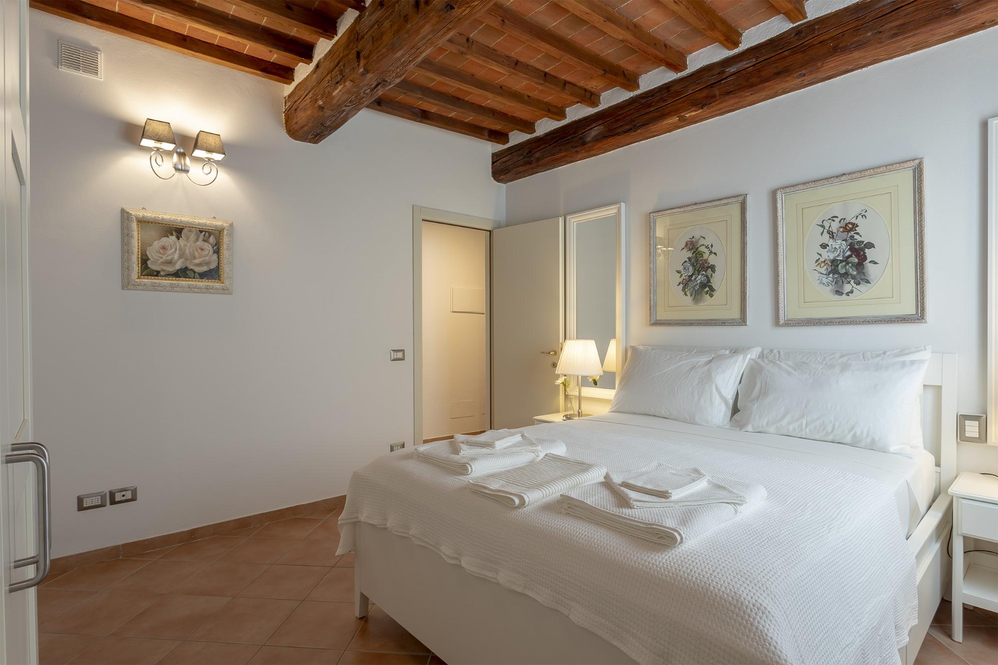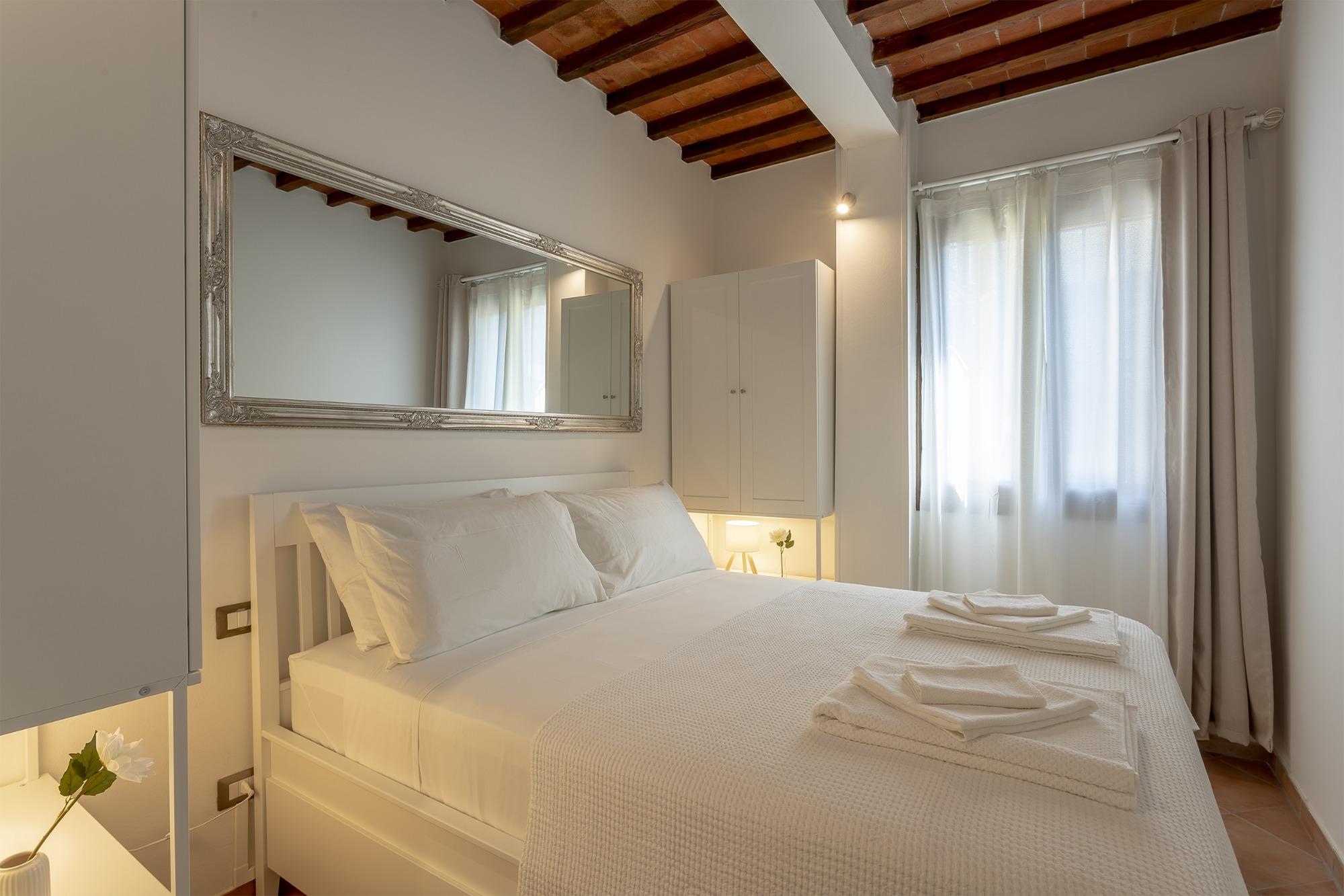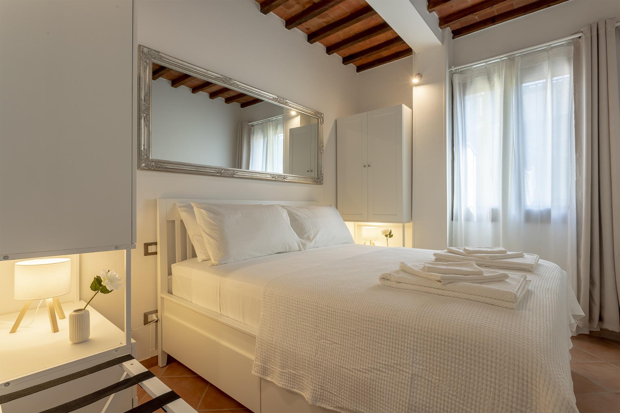 This rustic-style apartment is situated in a quiet and peaceful area, perfect for those seeking relaxation without sacrificing the convenience of reaching Florence and the main destinations in Tuscany. It can accommodate up to six guests and features two double bedrooms and a living room with a sofa bed, boasting bright spaces decorated in typical Tuscan style, highlighted by exposed beams and a warm, inviting atmosphere.