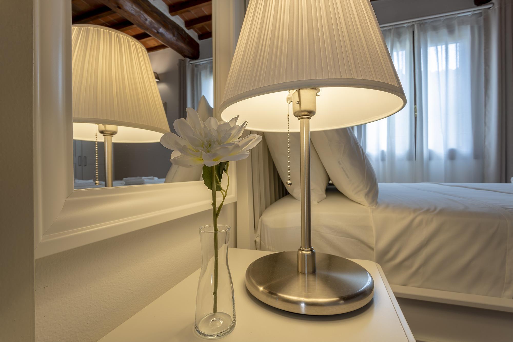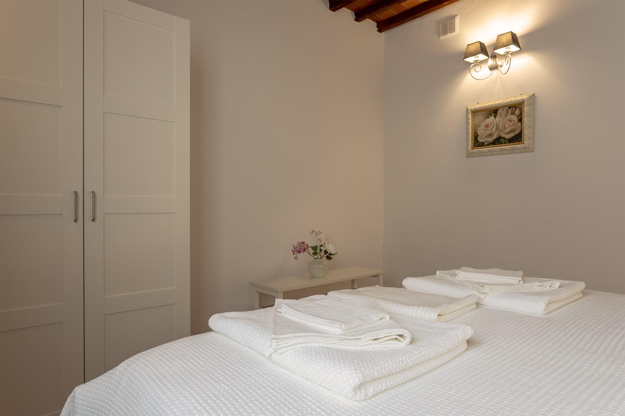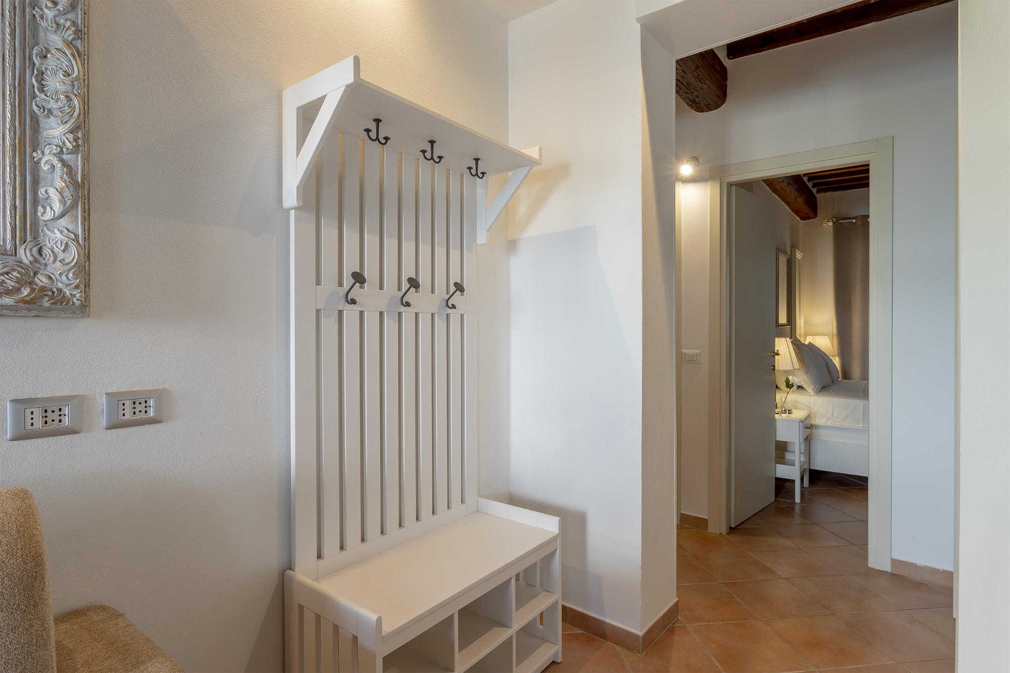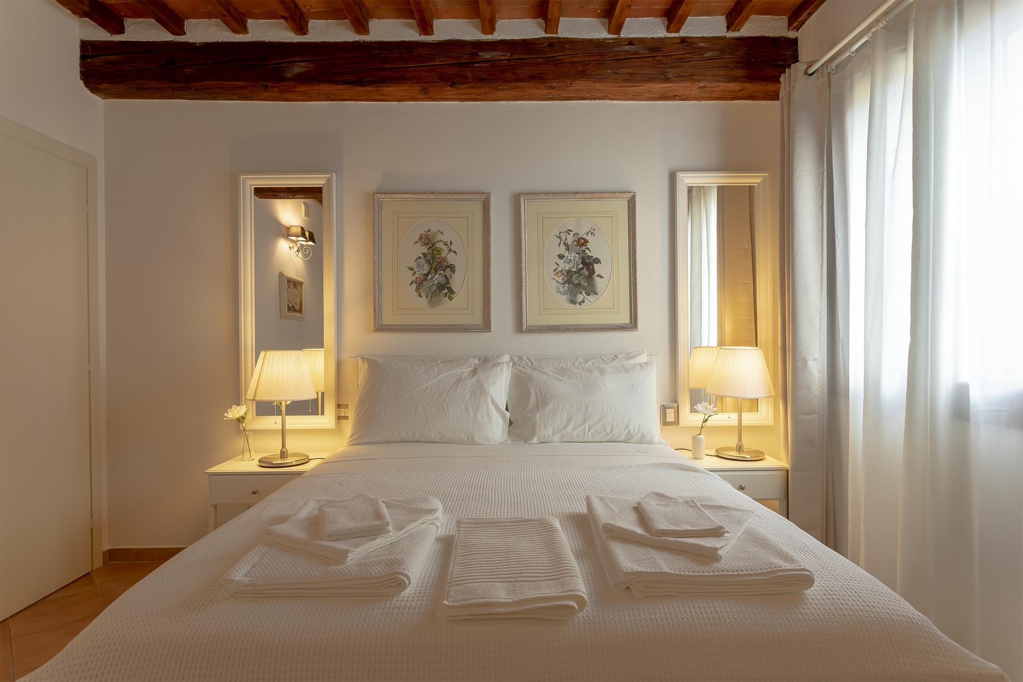 This rustic-style apartment is situated in a quiet and peaceful area, perfect for those seeking relaxation without sacrificing the convenience of reaching Florence and the main destinations in Tuscany. It can accommodate up to six guests and features two double bedrooms and a living room with a sofa bed, boasting bright spaces decorated in typical Tuscan style, highlighted by exposed beams and a warm, inviting atmosphere.