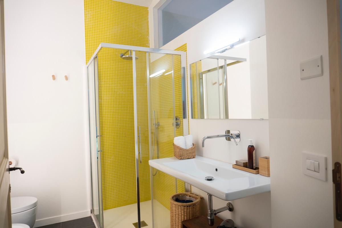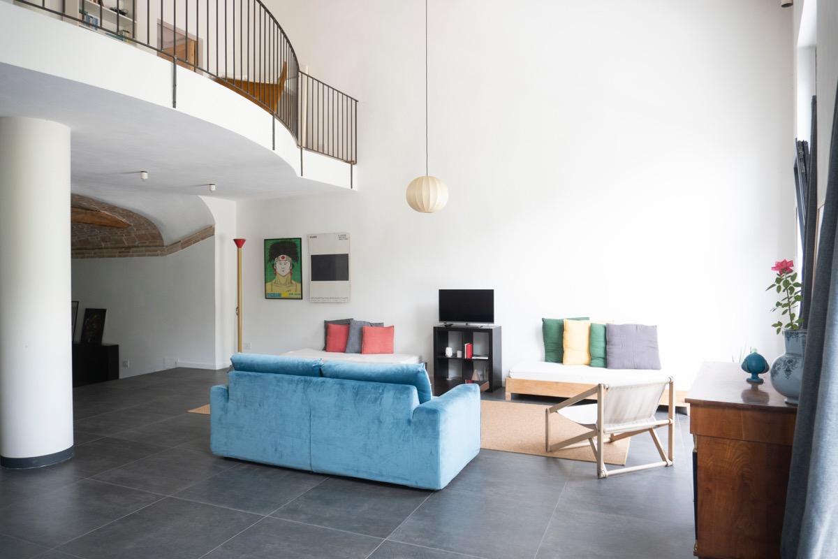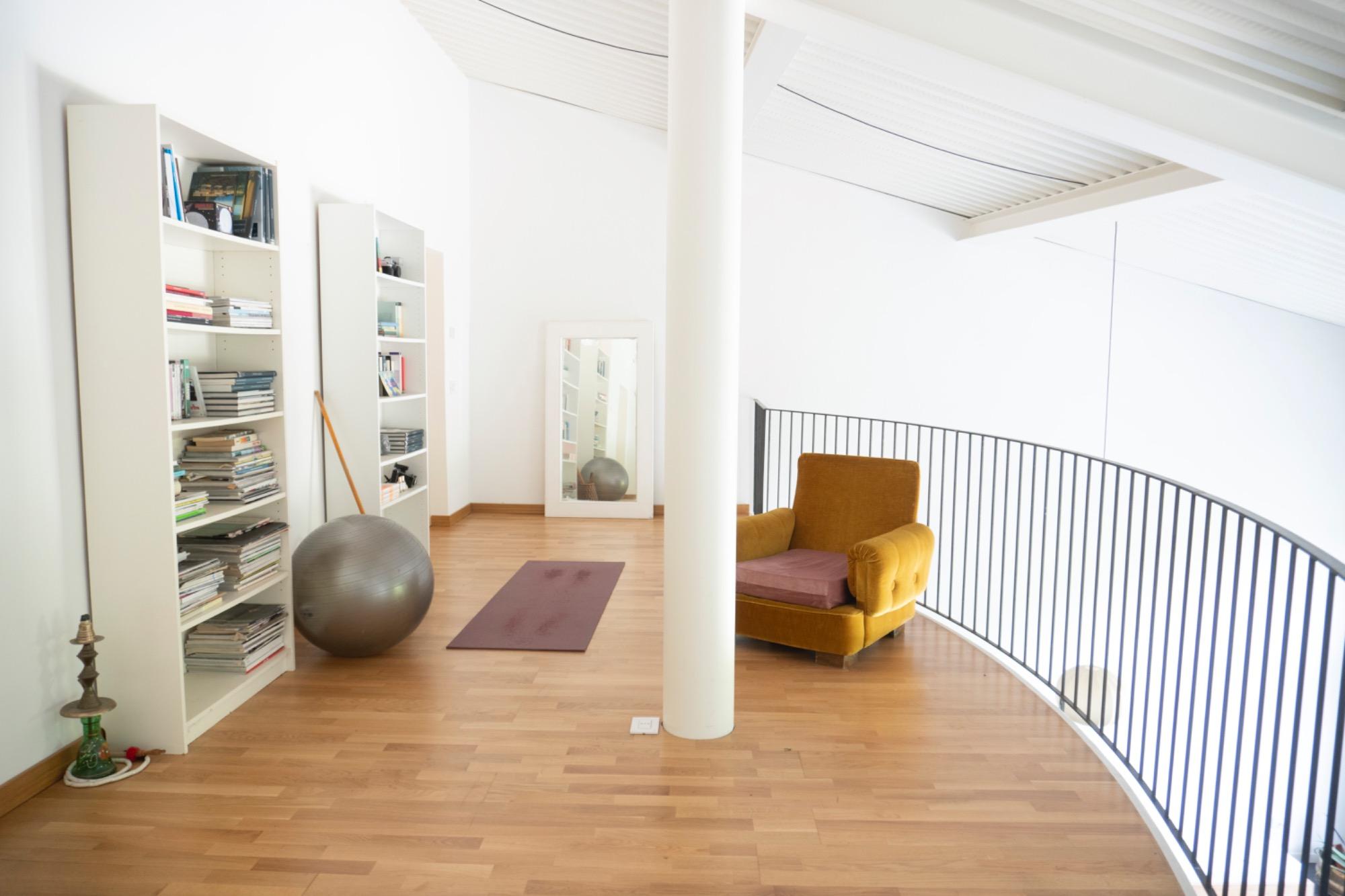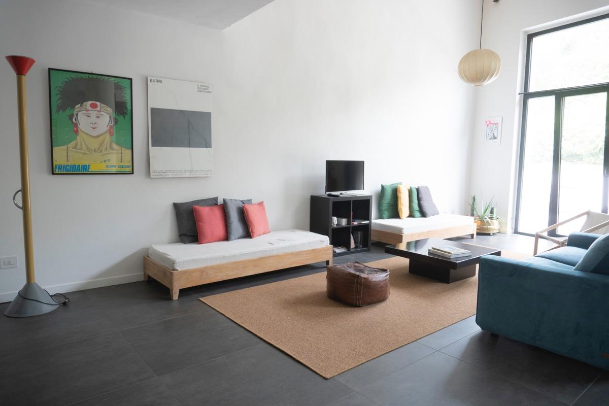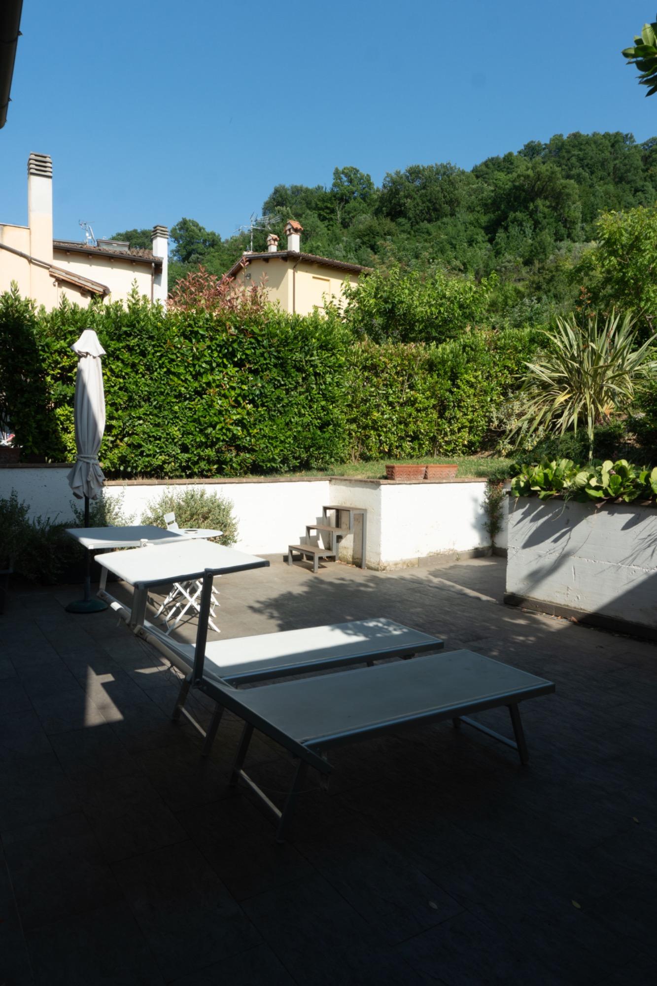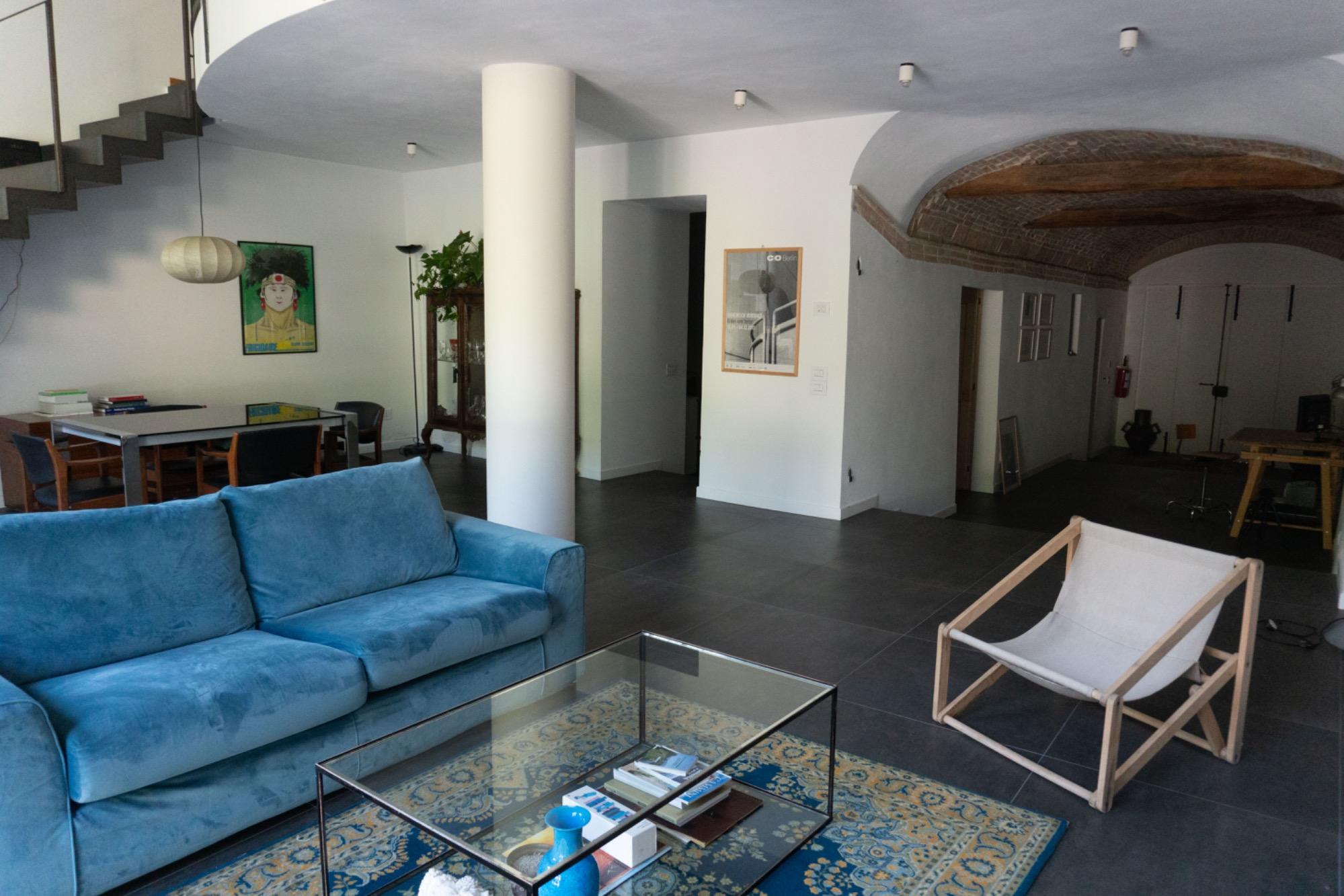 In a small village in Umbria, just a few kilometers from Foligno, there is a residence surrounded by greenery, converted from an old barn adjacent to a 17th-century building. The former entrance, which used to be a narrow path leading to the top of San Giuseppe hill, is now an integral part of the terraced garden, visible directly from the living room. This well-maintained, natural outdoor space is home to butterflies and birds, providing a calming view that enhances moments of tranquility.