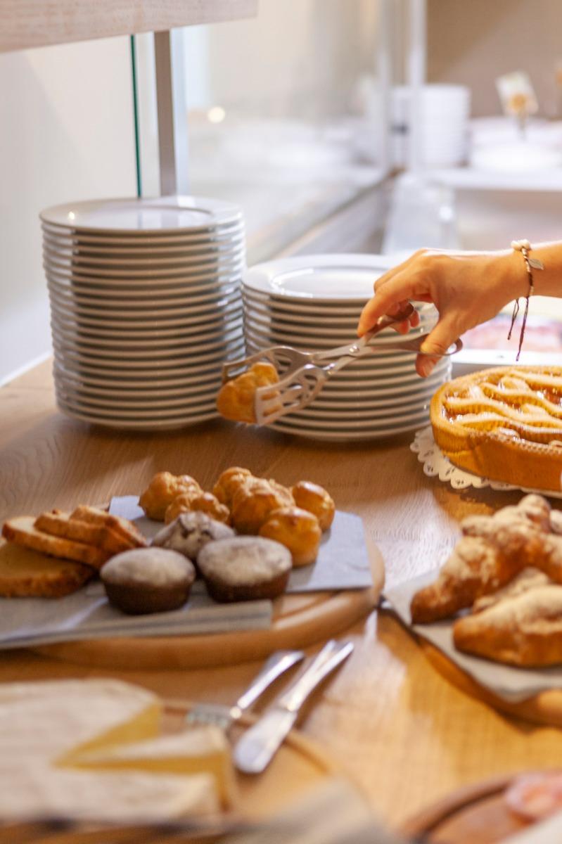 Breakfast is served from 7:30 to 10:00. You can enjoy a wide selection of sweet, savory, and protein-rich products, including jams, honey, and organic cereals. Additionally, we offer butter and Grana del Trentino cheese, cold cuts, sourdough bread, and homemade pastries. You will also find fresh fruit and much more. We have chosen not to use single servings to respect the environment and offer you an even more authentic taste.