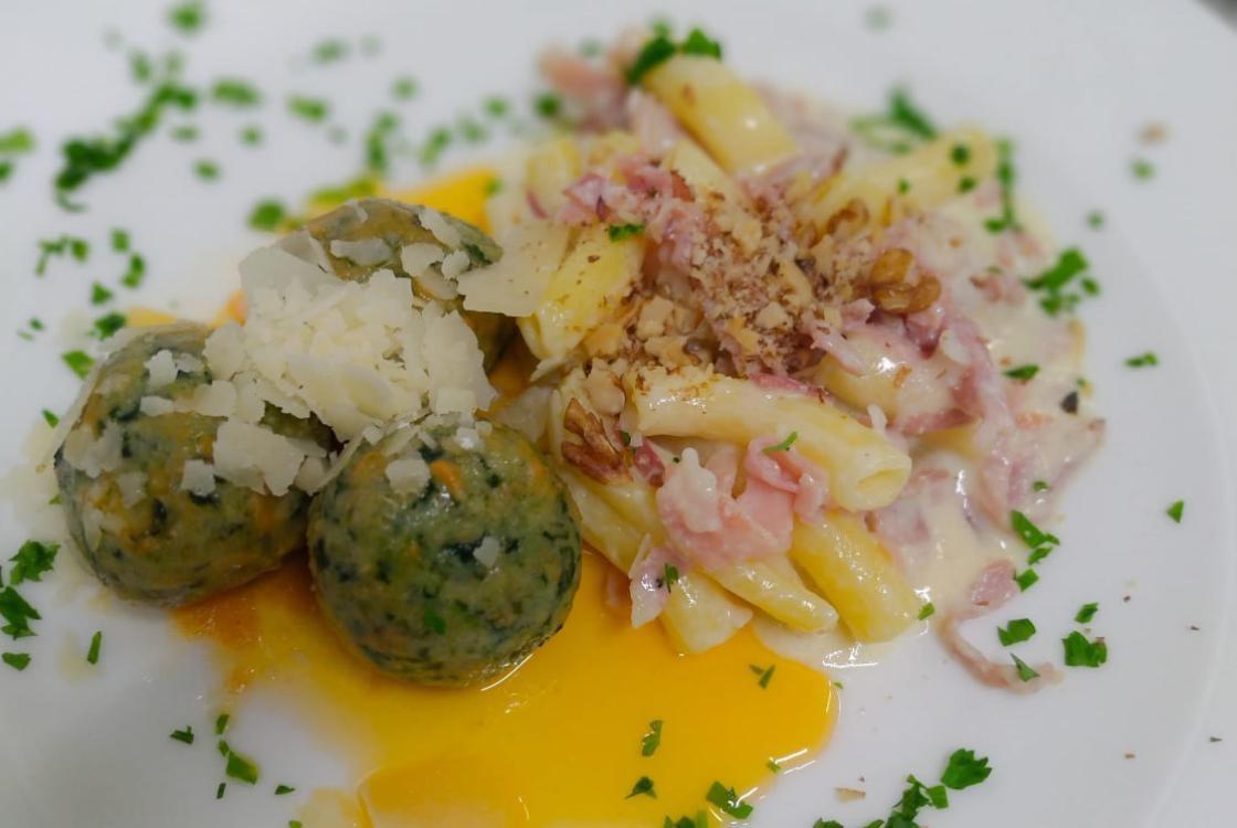 We choose to source as much as possible from local producers and prefer organic products. At the hotel, we organize tastings of Trentino wines, cheeses, and cured meats. Furthermore, we are attentive to people with specific dietary needs. We offer products for celiacs, vegetarian dishes, and some vegan options.