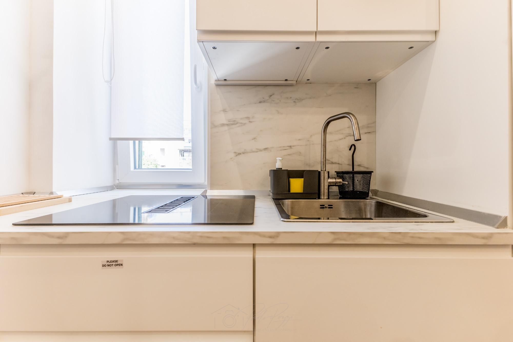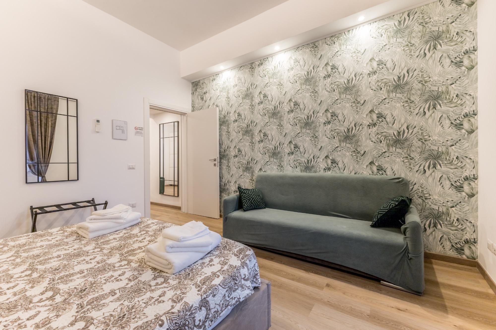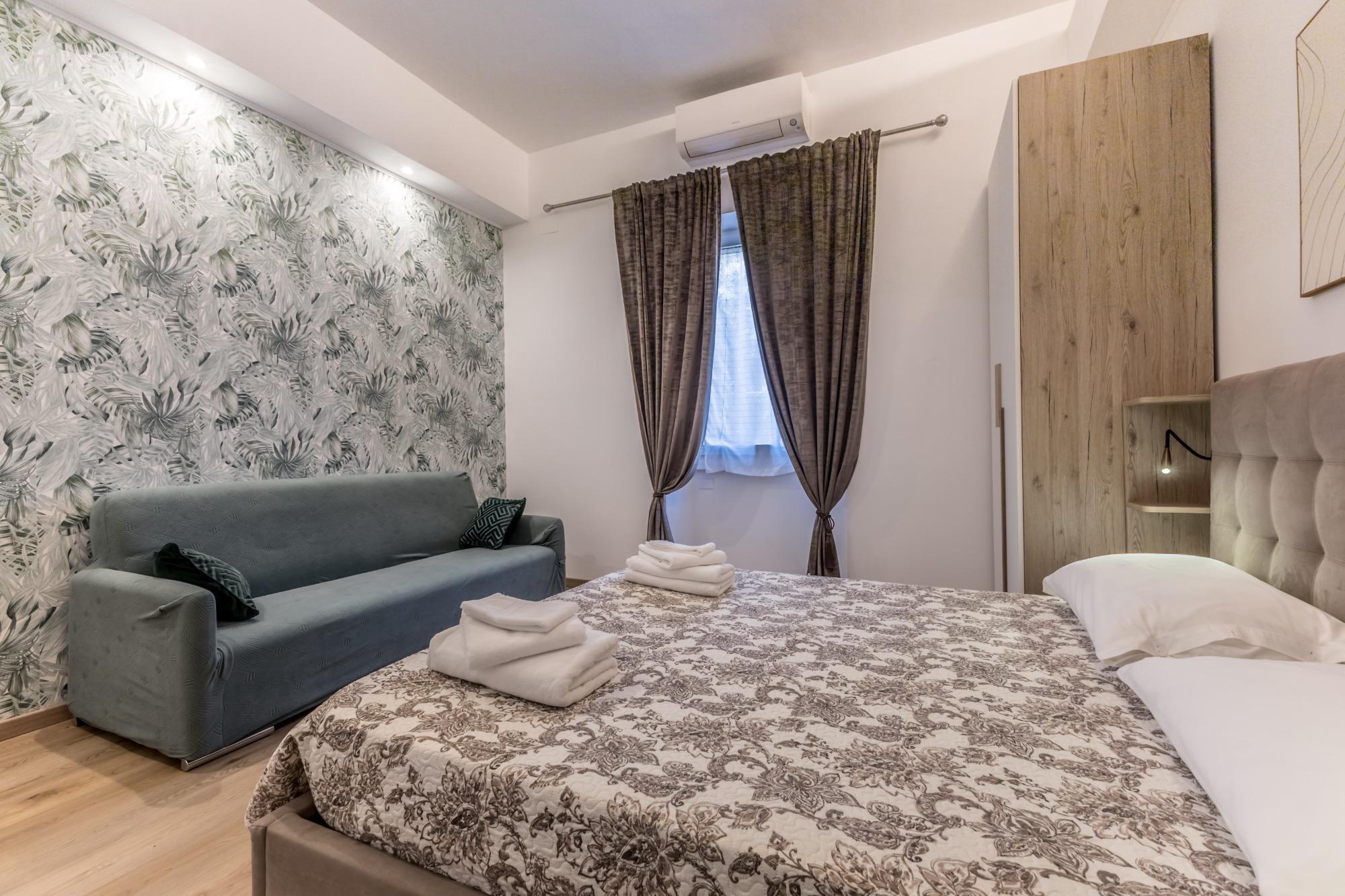 L’appartamento, posto al primo piano, offre una spaziosa camera matrimoniale, un soggiorno con divano letto, una cucina a vista completa di tutto il necessario e un bagno moderno con doccia. Gli ambienti sono luminosi e curati nei dettagli, ideali per coppie, famiglie o viaggiatori in cerca di comfort e praticità.