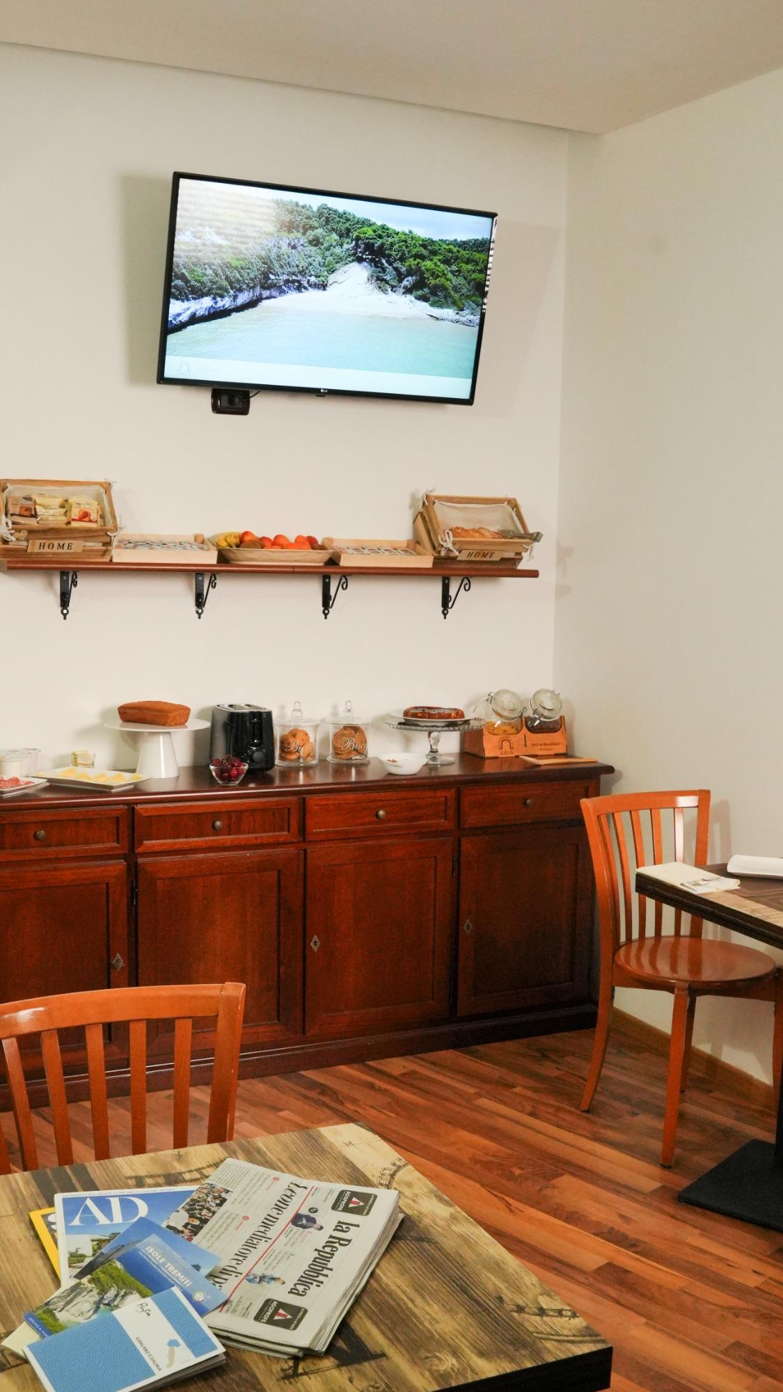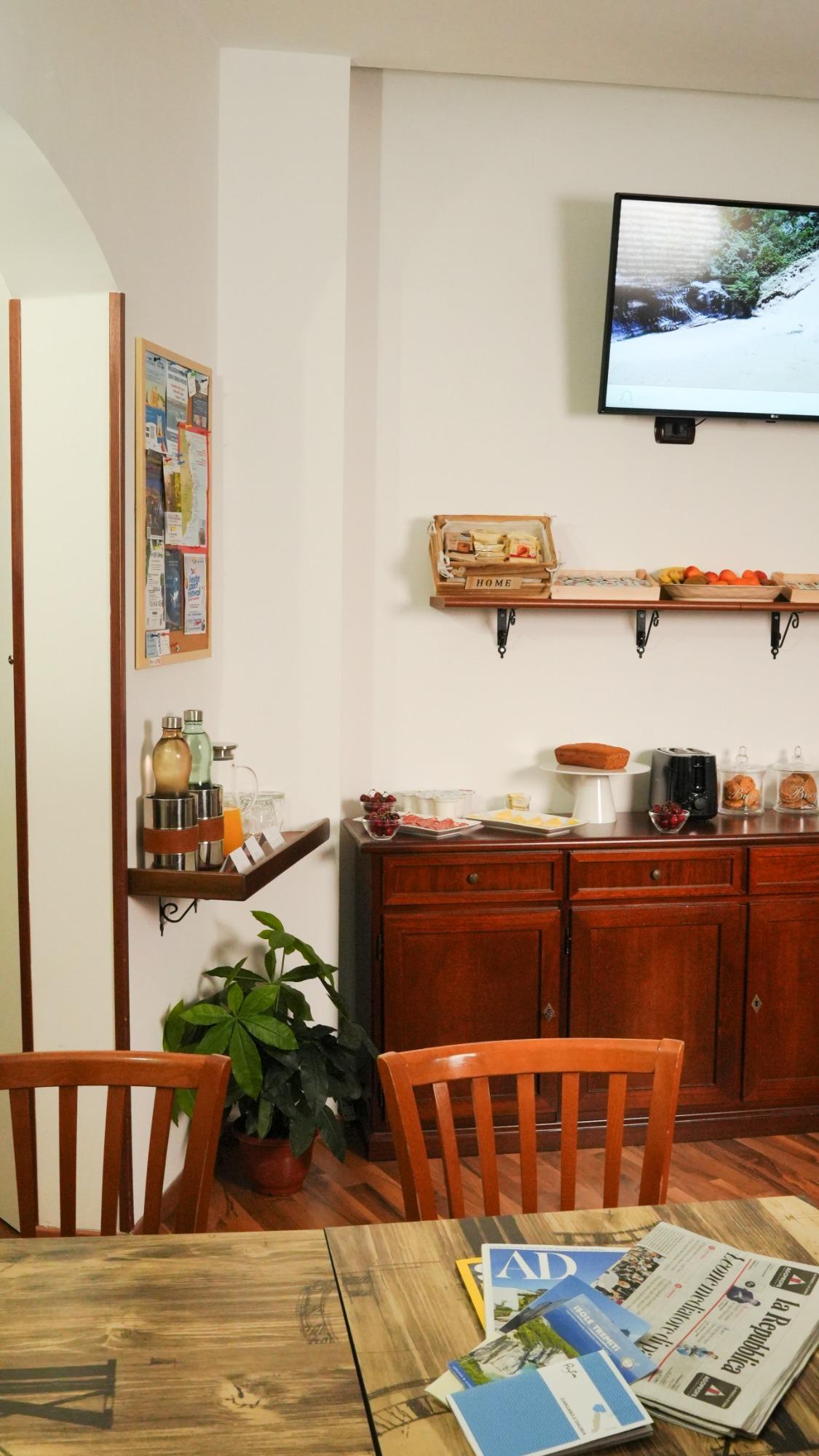 The breakfast, of a traditional kind with sweet and savory options, also includes typical local products.