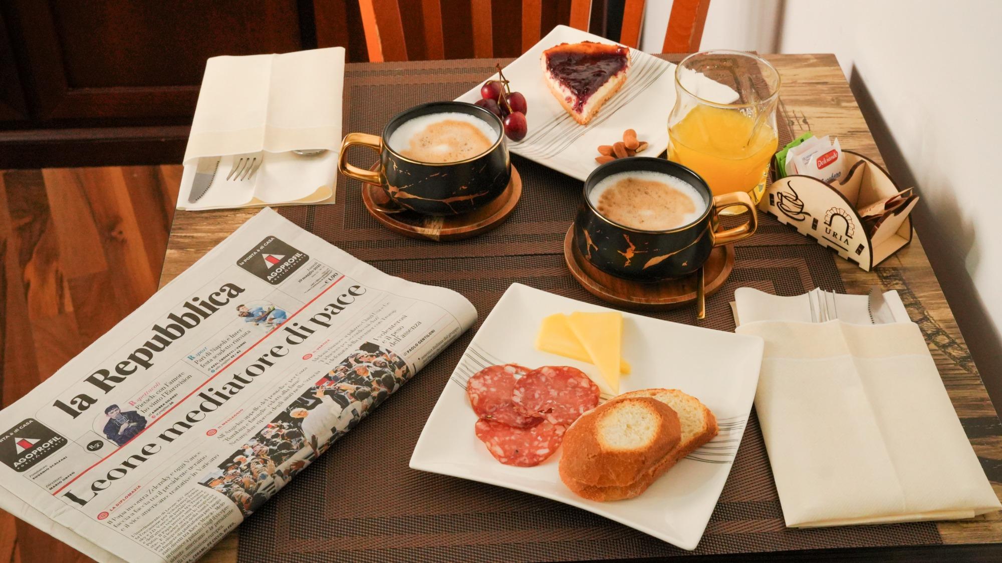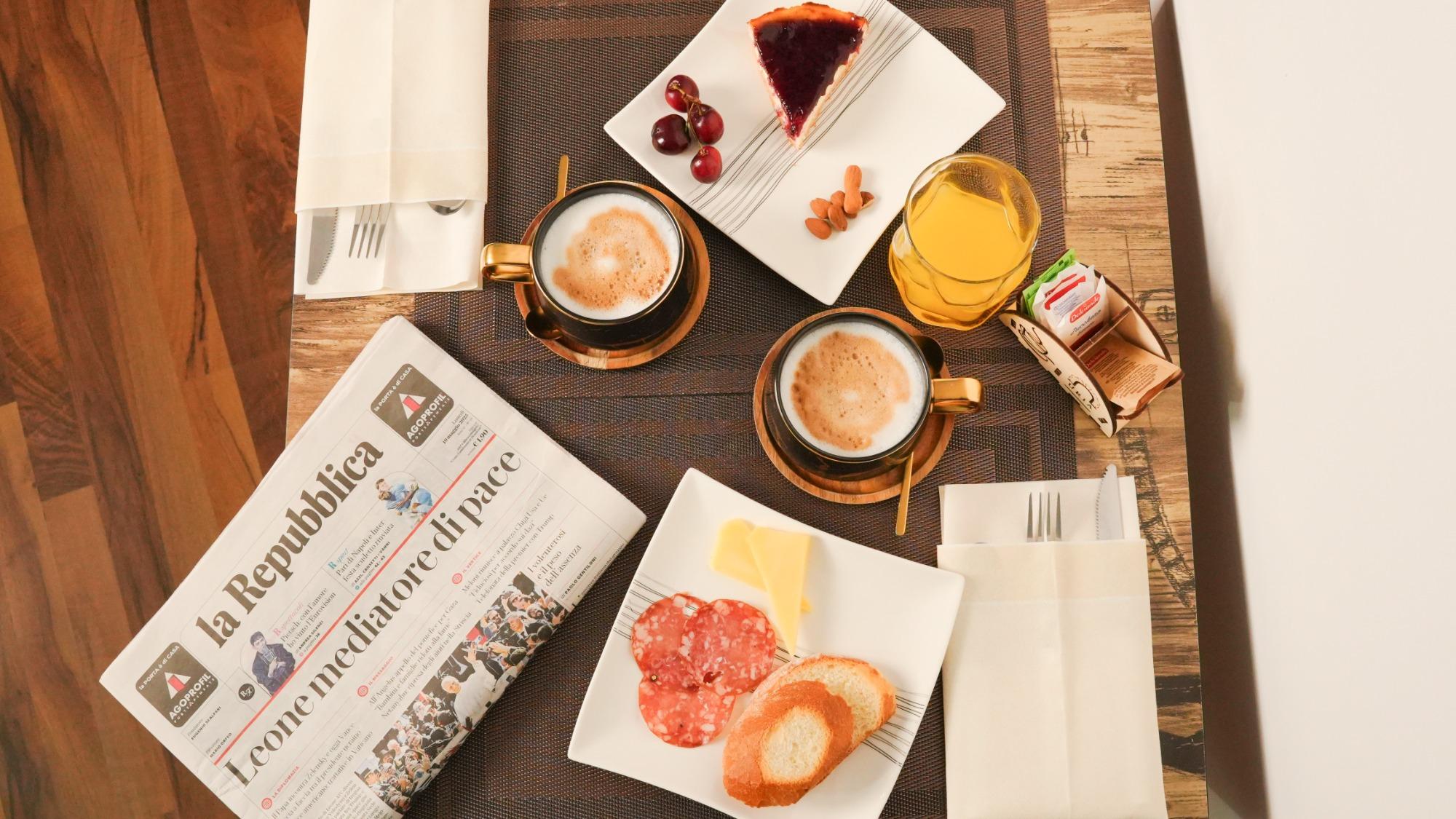 The breakfast, which is of a traditional nature with sweet and savory options, also features local typical products.