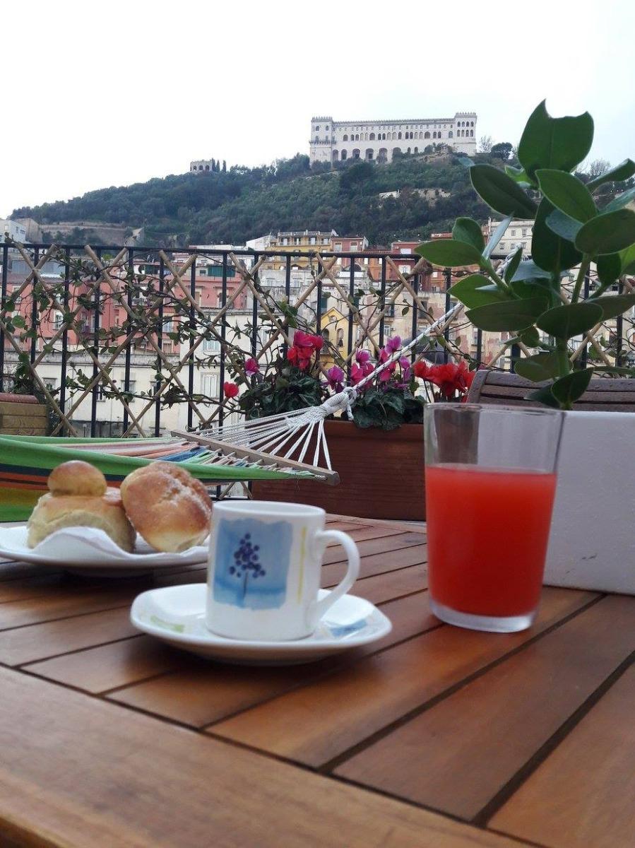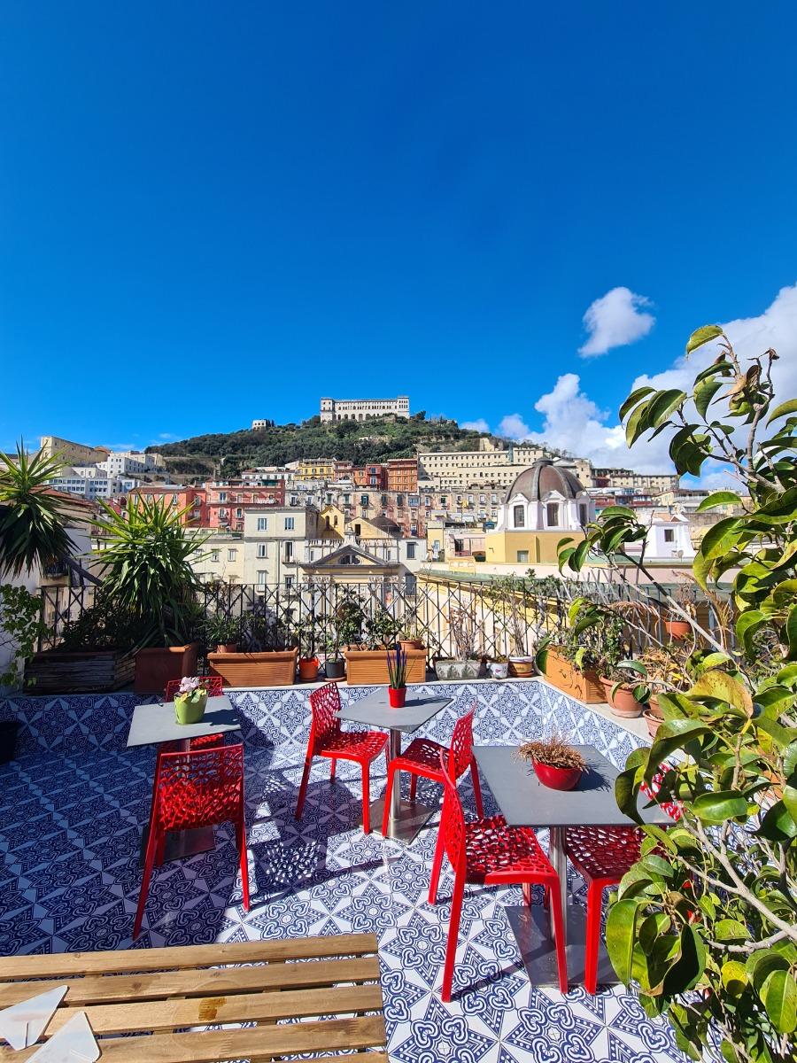 Our recently renovated and completely transformed B&B is the ideal choice for a pleasant stay in Naples. Managed by Anna and Luca, renowned restaurant owners in the heart of the city, our B&B offers spacious and comfortable rooms, each with its own private bathroom. Located in the charming historic center of Naples, right next to the famous Via Toledo, our apartment is on the fourth floor of a modern building with a convenient elevator. The three bright and panoramic rooms are equipped with all the necessary comforts. In the kitchenette area, you can directly access the panoramic terrace, where you can relax and enjoy a coffee while admiring the splendid Certosa di San Martino. Guests can freely use the fully equipped kitchenette area and enjoy breakfast, served every morning both indoors and on the terrace with a view of the city. Furthermore, the Toledo metro stop is right in front of our building, making it easy to reach all the main attractions and services in Naples. The National Museum is just a 15-minute walk away, the port is a 10-minute walk away, the historic center is 5 minutes away, and the train station is 20 minutes away by metro. If you arrive at the airport, you can easily reach us by taxi in 20 minutes or with the Alibus in 30 minutes.