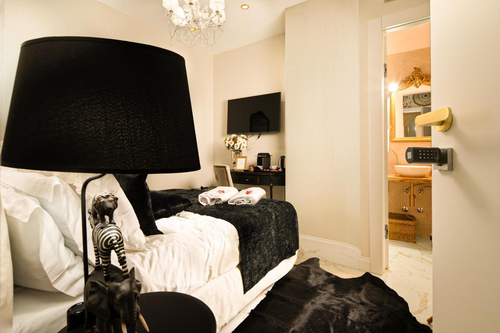 Las dos habitaciones privadas, con baño en suite, están decoradas con buen gusto y cuentan con comodidades de alta calidad: aire acondicionado ajustable, conexión Wi-Fi rápida, smart TV de 43 pulgadas, caja fuerte, minibar con selección exclusiva, cafetera Nespresso con una amplia variedad de cápsulas, incluyendo Vertuo, y hervidor con una selección de infusiones. La atención al detalle se completa con pequeños extras como secador de pelo, pantuflas y chocolates Lindt.