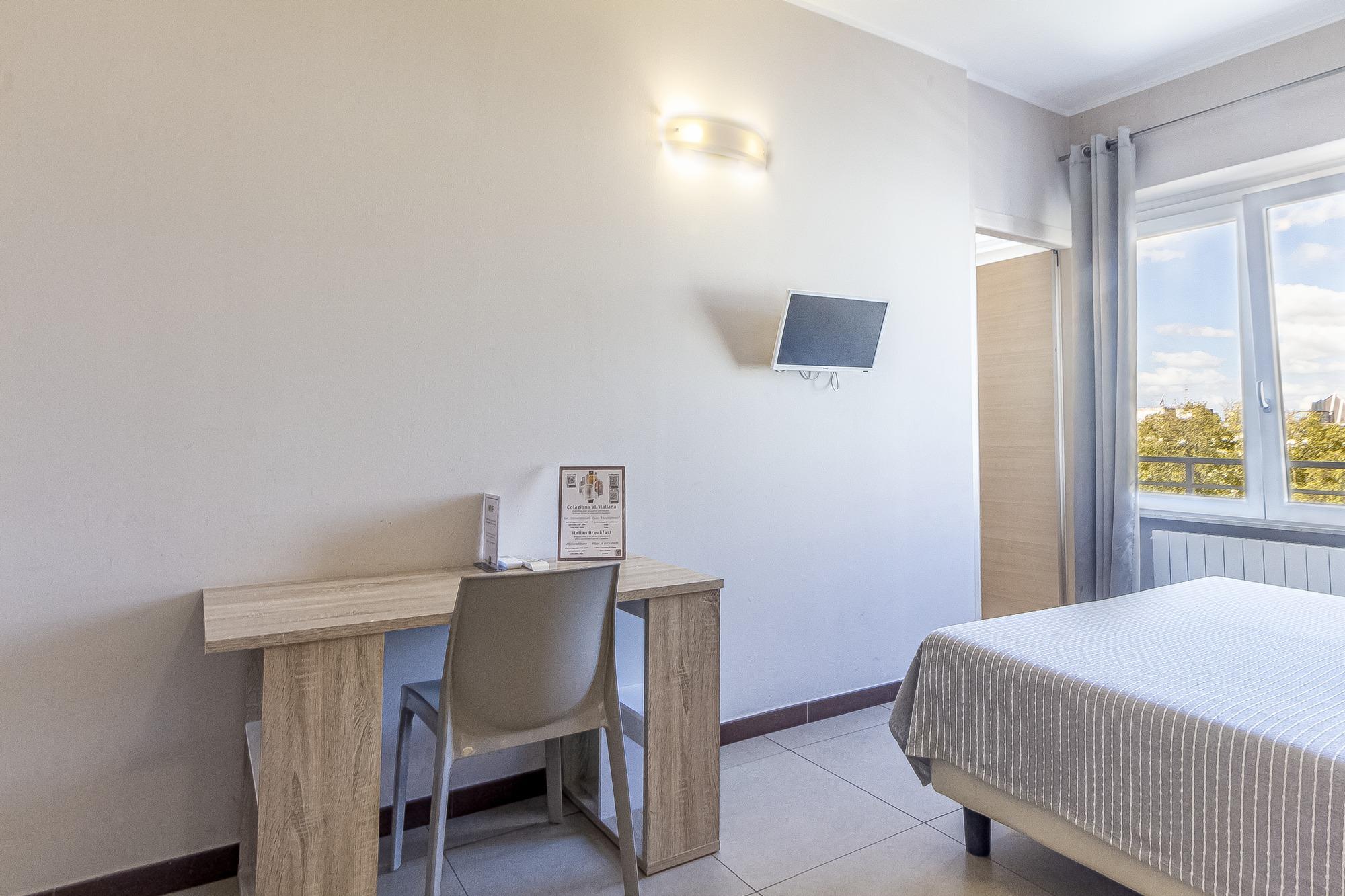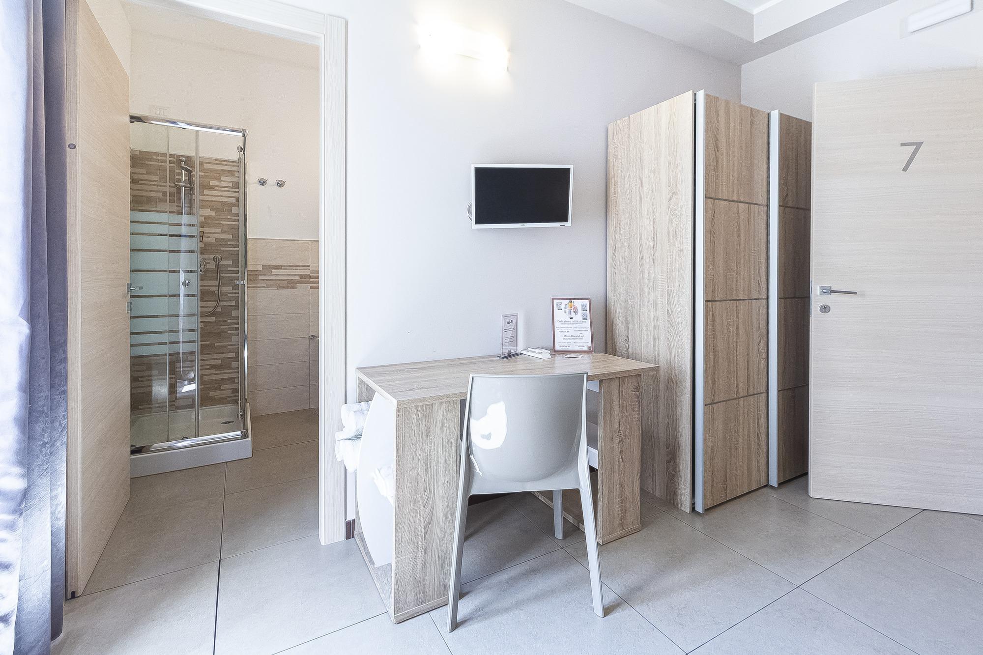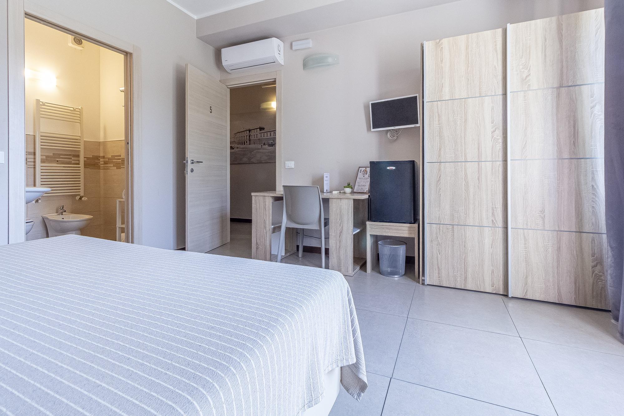Le camere, moderne e silenziose, sono pensate per garantire un riposo rigenerante: ogni alloggio dispone di bagno privato, aria condizionata, TV a schermo piatto, Wi-Fi gratuito e biancheria di qualità. Il self-check-in flessibile consente di arrivare in totale autonomia, con supporto telefonico sempre attivo per qualsiasi necessità. La struttura è interamente non fumatori e non ammette animali.