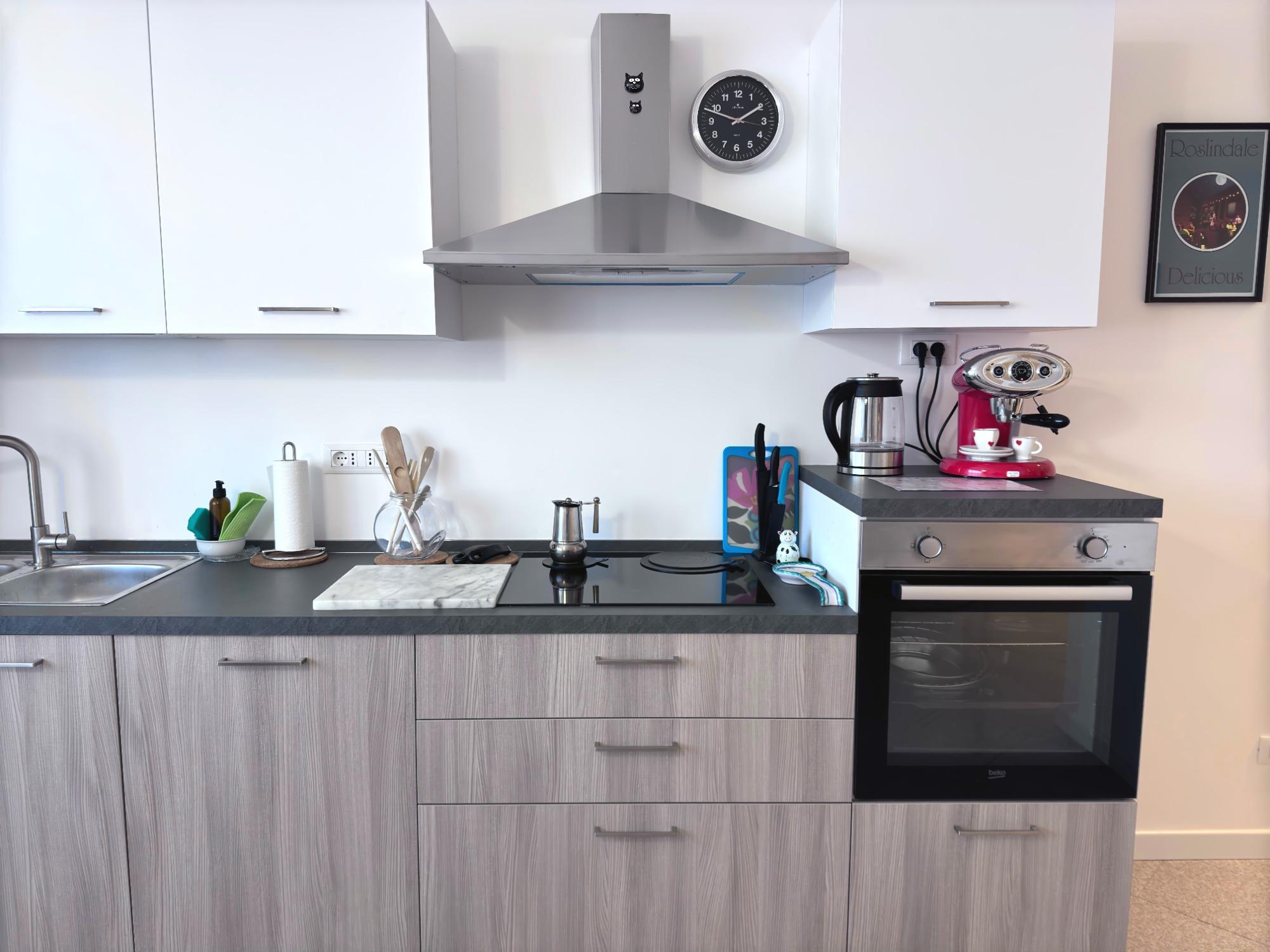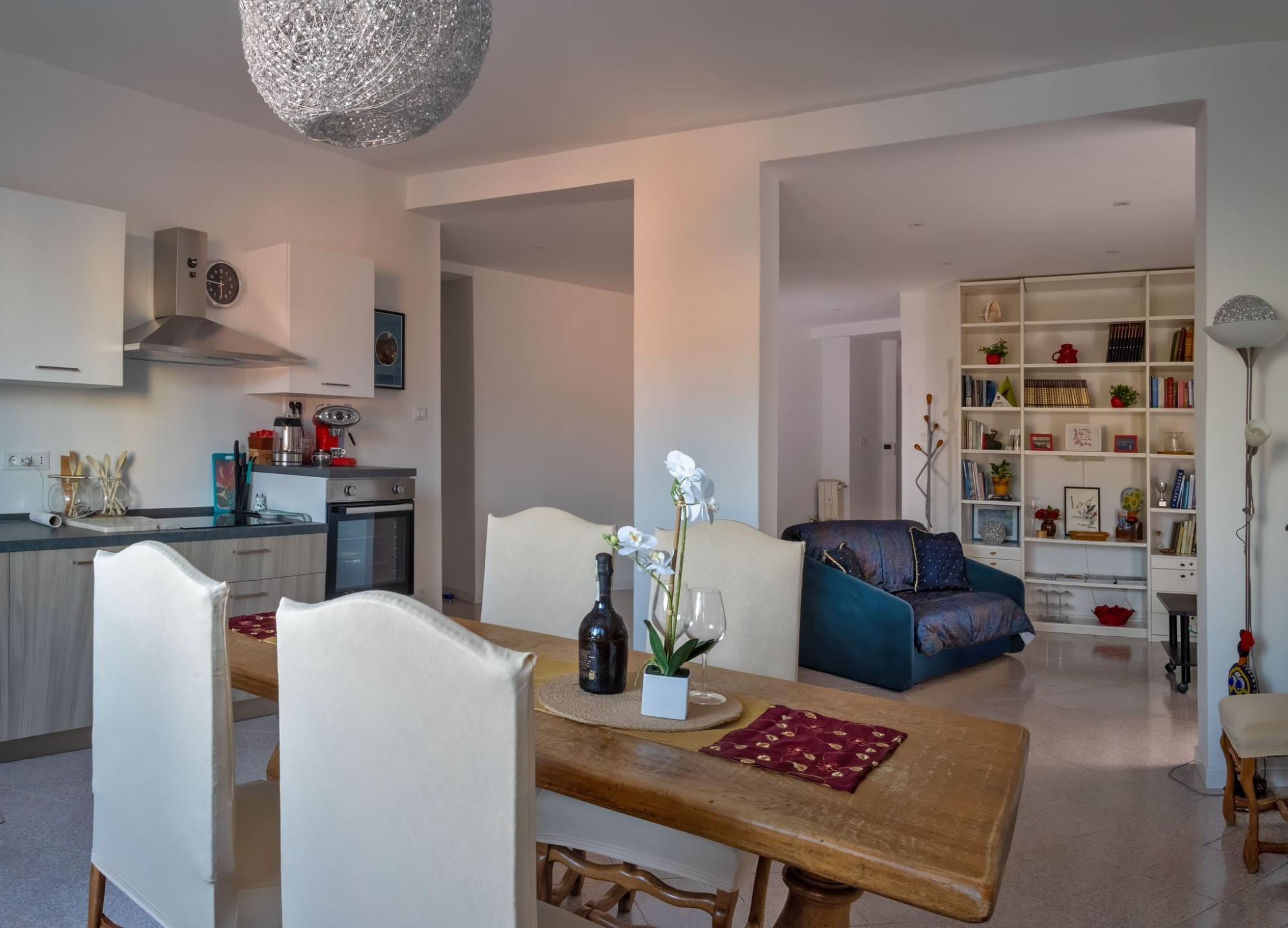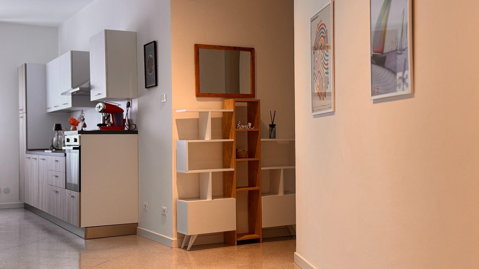 La zona giorno offre una cucina completamente attrezzata e un’area living confortevole, pensata per i momenti di relax.