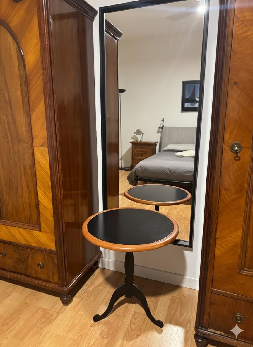 Completa l’alloggio un bagno con doccia e bidet. L’arredamento è arricchito da elementi dal sapore storico, come gli armadi d’epoca in stile Biedermeier, che donano personalità e un tocco di eleganza senza tempo.