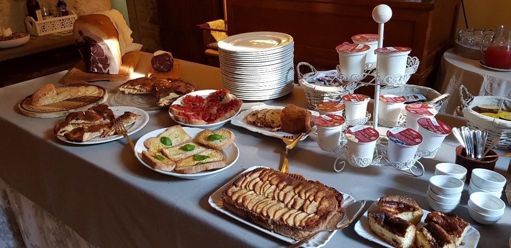 The breakfast room is located in the basement of Villa Alba, which has been restored from an old cellar to create a cozy and familiar atmosphere. It can be accessed both internally and externally through the garden. The buffet breakfast is served every morning from 8:30 to 9:30 and includes a variety of beverages such as milk, coffee, tea, hot chocolate, orange or pineapple juice. Additionally, you will find cereals, jams, honey, chocolate, toast, croissants, and much more. We are particularly proud to offer our guests Tuscan cold cuts and cheeses, delicious bruschetta with oil or tomato, and on special occasions such as Christmas and Easter, traditional Tuscan sweets as well. These are always highly appreciated by our guests.