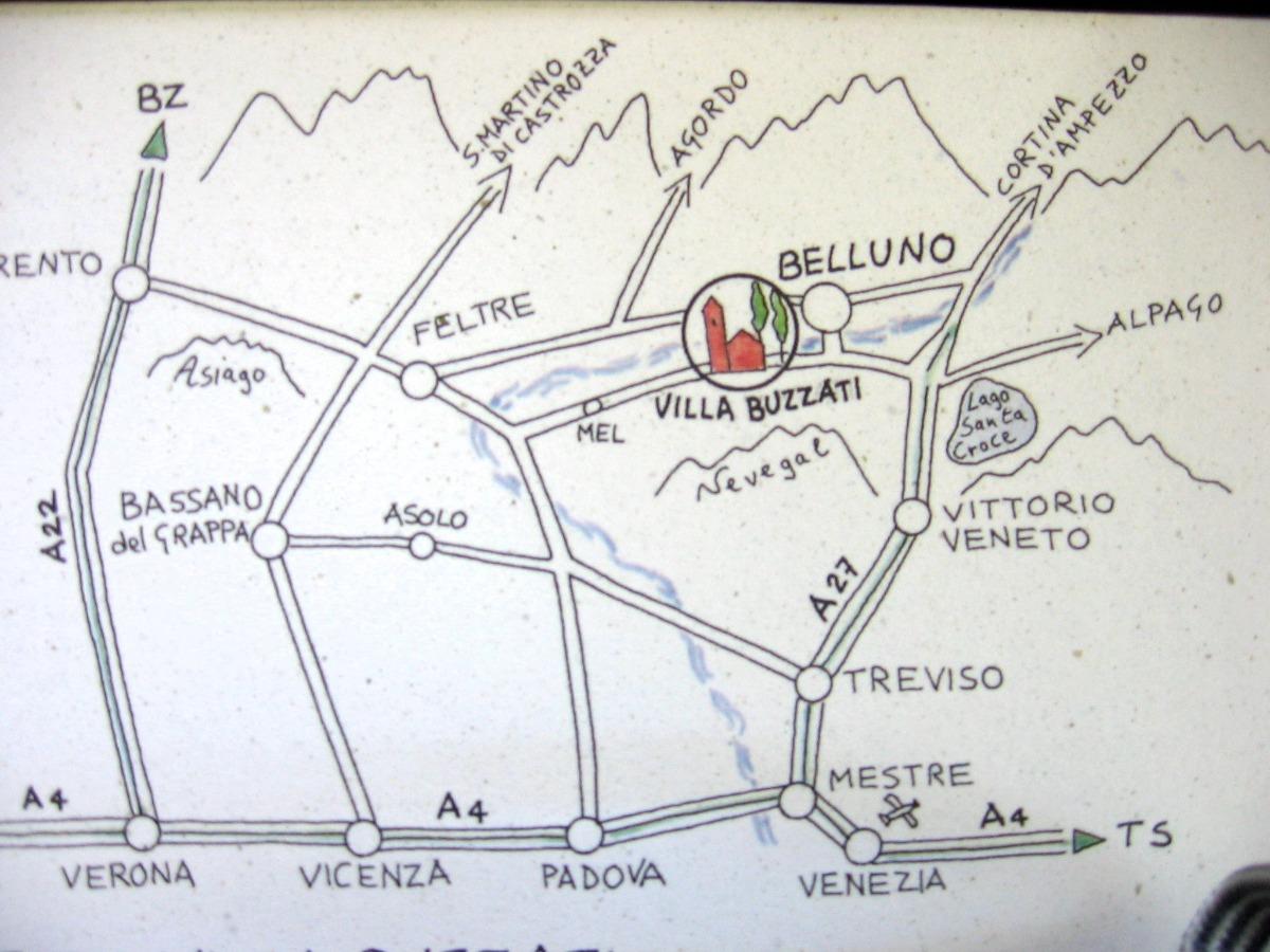 "C'est ici que Dino Buzzati est né, frère de ma grand-mère, écrivain, journaliste et peintre. Même s'il vivait à Milan, comme nous tous, il passait régulièrement le mois de septembre dans cette maison, écrivant, se promenant et escaladant les montagnes voisines, avec ma mère et ses amis."