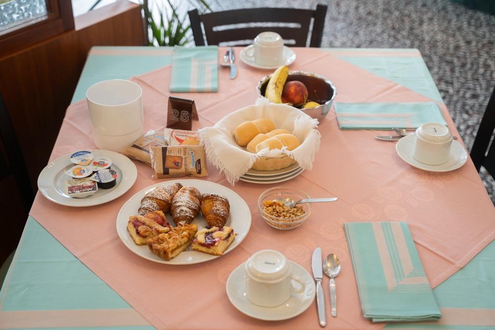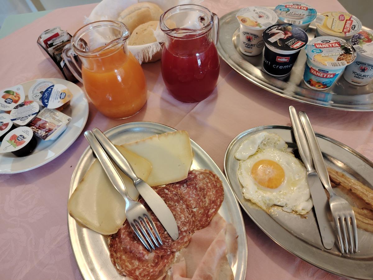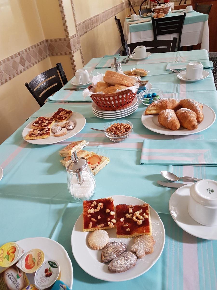 La nostra deliziosa colazione ti attende al tavolo. Potrai gustare latte, caffè, cappuccino, caffè americano, preparati al momento al nostro bar, succhi di frutta accompagnati da torte fatte in casa, crostate, croissant, biscotti, fette biscottate, burro e marmellate, cereali e yogurt. Se invece desideri una colazione salata, avrai a disposizione formaggi, salumi, uova, bacon e frutta fresca. Siamo inoltre attenti alle esigenze alimentari, pertanto possiamo preparare colazioni per persone con intolleranze (glutine e lattosio) su richiesta al momento della prenotazione. Tutti i prodotti che utilizziamo per la colazione sono di alta qualità. Potrai gustare la colazione dalle 7: 30 alle 10: 00.