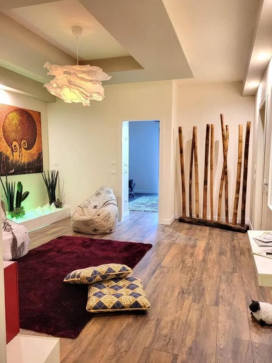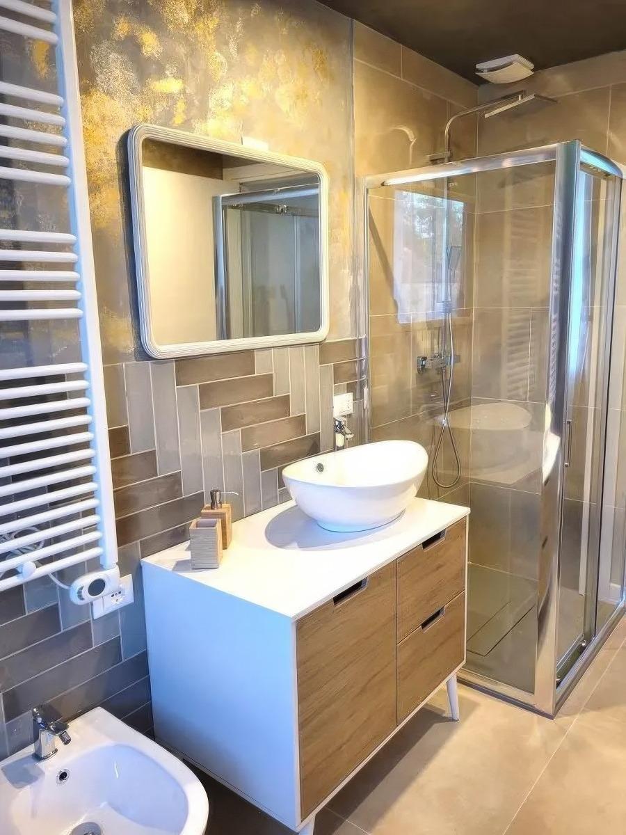 La zone nuit se compose de trois chambres doubles et d'une chambre polyvalente qui, selon les besoins, peut devenir simple, double avec lits simples, double et triple grâce à un fauteuil-lit confortable. Toutes les chambres ont leur propre salle de bains privative avec douche et bidet. De plus, il y a une cinquième salle de bains à usage commun, également avec douche. Enfin, il y a un salon pour votre détente avec un canapé confortable, une bibliothèque fournie de différents types de livres, y compris pour les enfants, et un magnifique balcon donnant sur le jardin de la villa où vous pourrez déguster un bon verre de vin en regardant le coucher de soleil sur les collines Euganéennes, ainsi qu'une pièce avec coin TV et divers jeux de société. Toutes les pièces de l'appartement sont équipées de climatisation et de pompes à chaleur, chacune avec son propre thermostat.