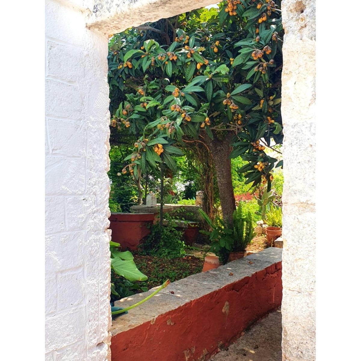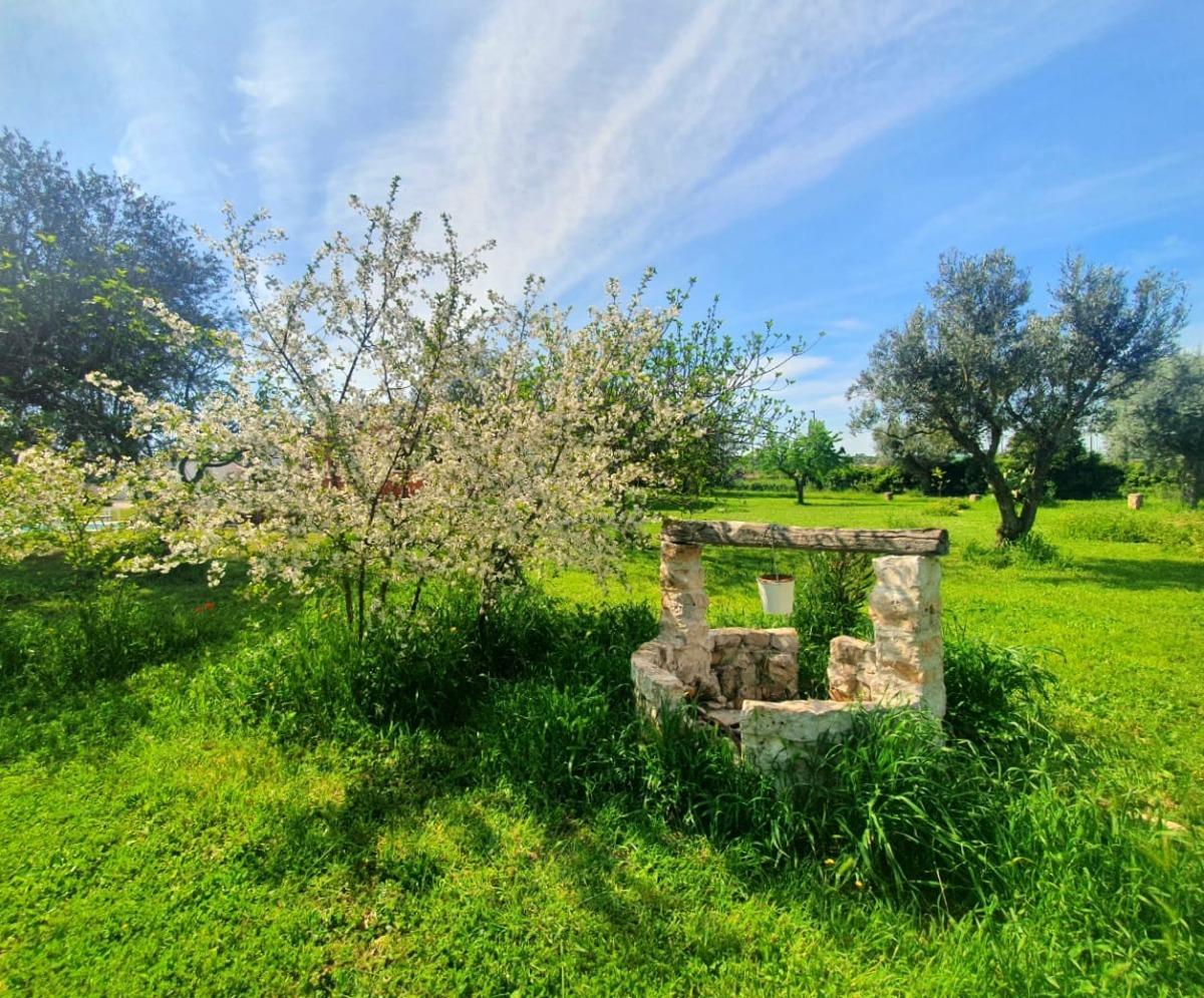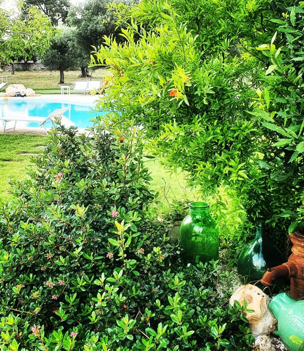 The villa is immersed in the wonderful hilly countryside of Monopoli, in the Cozzana district, surrounded by a charming olive grove and almond trees, with typical Mediterranean plants such as cherry trees, walnuts, hazelnuts, fioroni, and prickly pears.