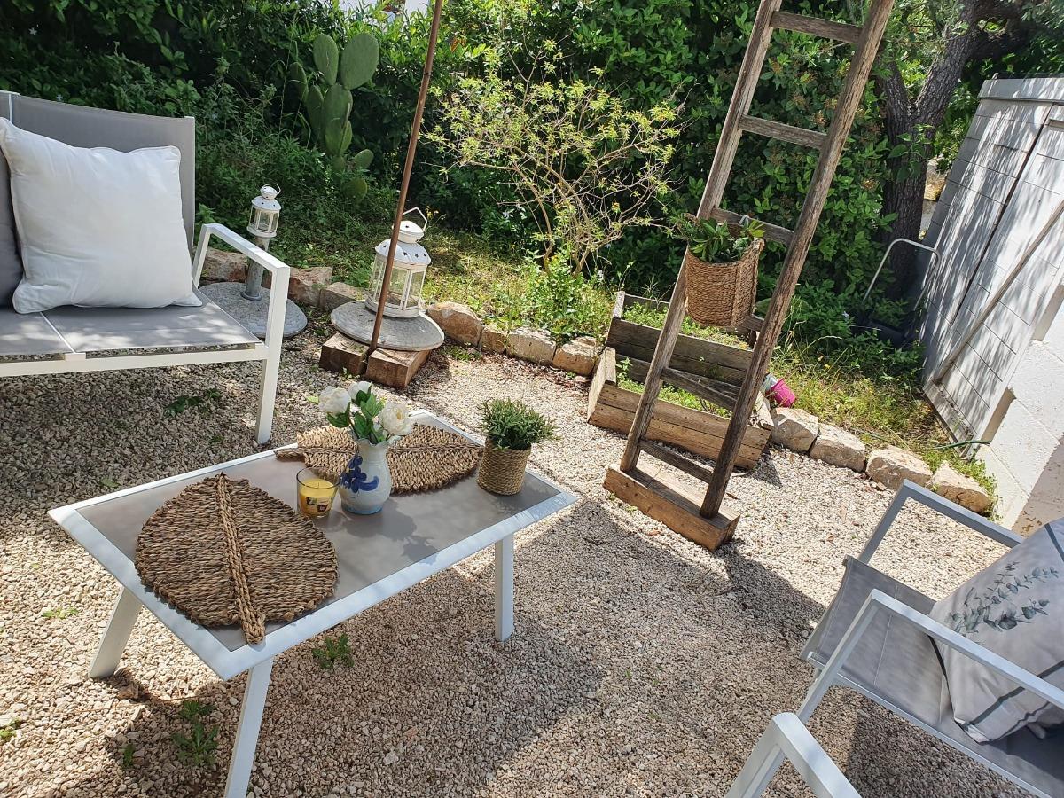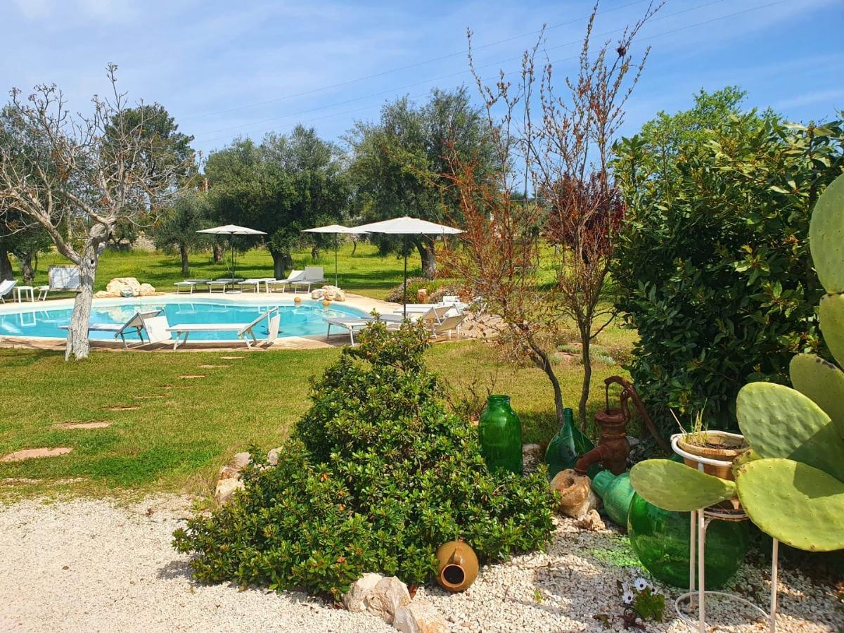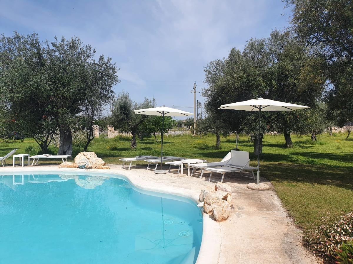 The villa is immersed in the wonderful hilly countryside of Monopoli, in the Cozzana district, surrounded by a charming olive grove and almond trees, with typical Mediterranean plants such as cherry trees, walnuts, hazelnuts, fioroni, and prickly pears.